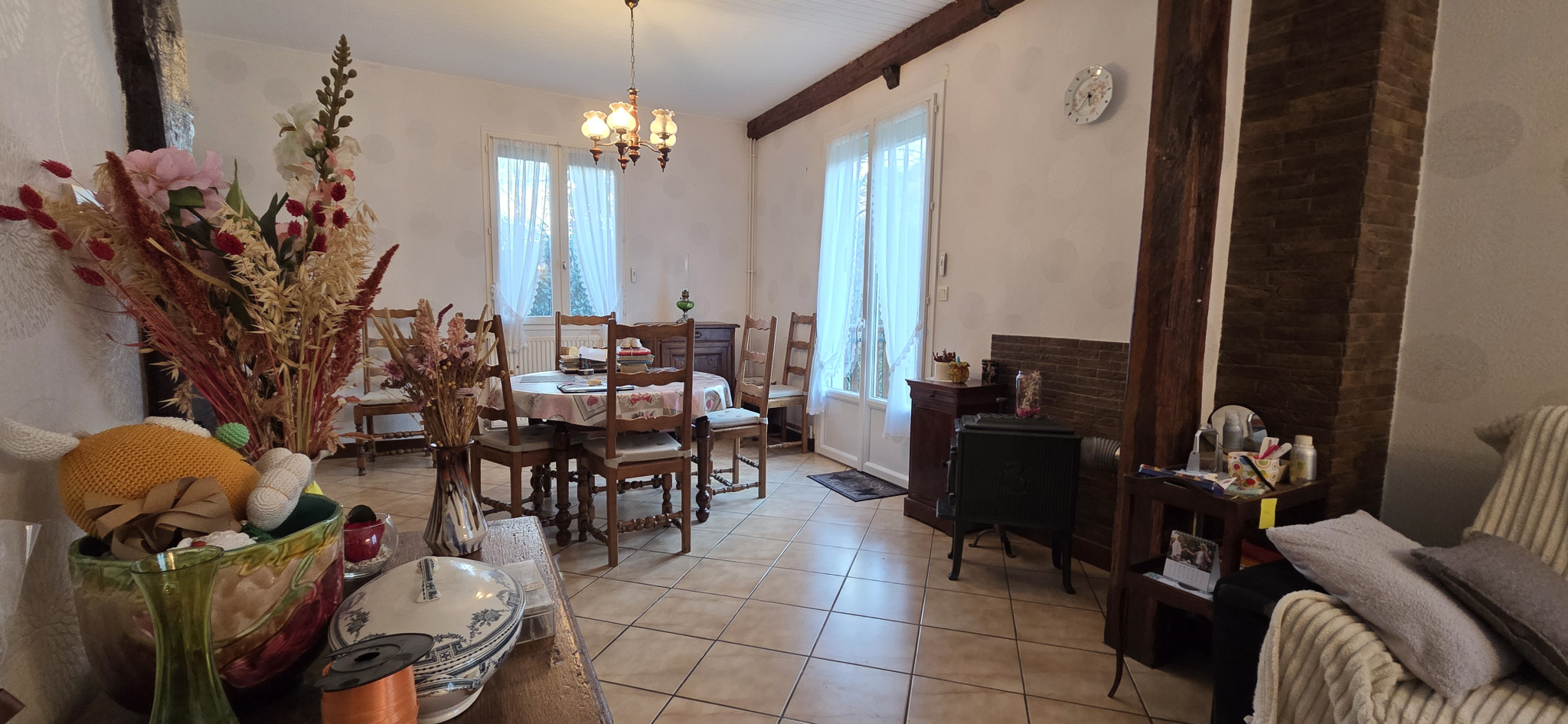 Les huisseries sont en bois double vitrages et une en PVC 2 vitrages et les volets en PVC sont électriques