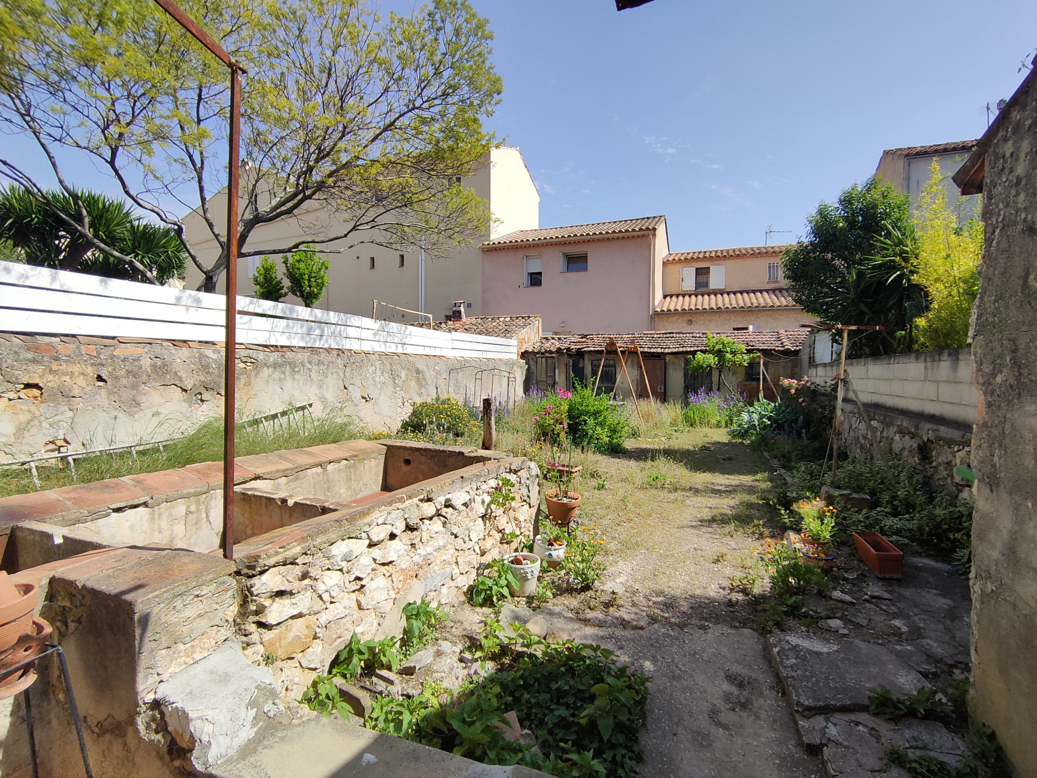 Jardin commun d'environ 145m2 à aménager avec lavoir, puits et cabanons de jardin à rénover