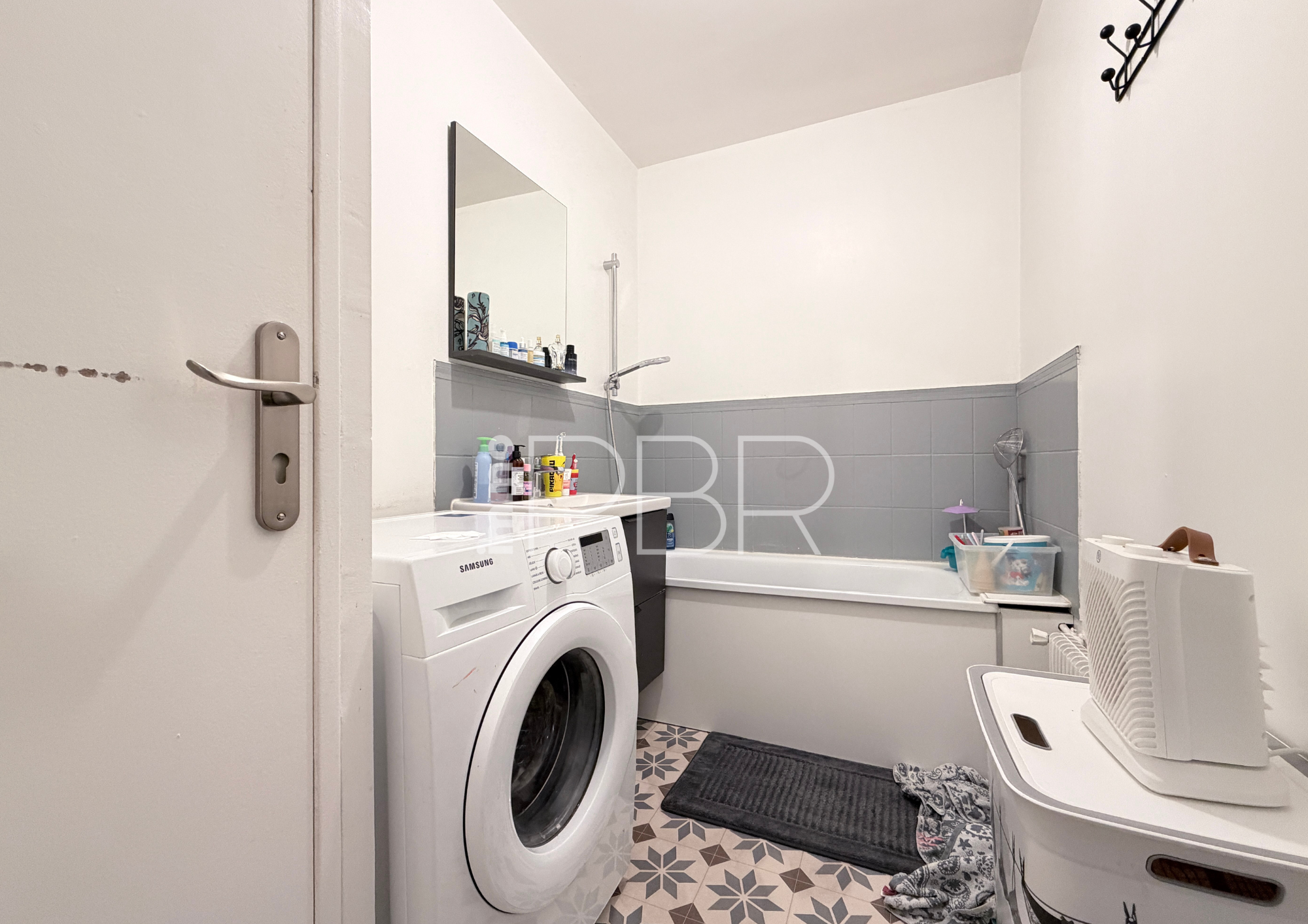 L'appartement s'ouvre sur une entrée fonctionnelle avec rangements, menant à une salle de bains, des WC indépendants, puis à une cuisine contemporaine entièrement équipée, ouverte sur un séjour lumineux et convivial. Ce dernier donne accès à un balcon, parfait pour profiter de l'extérieur.