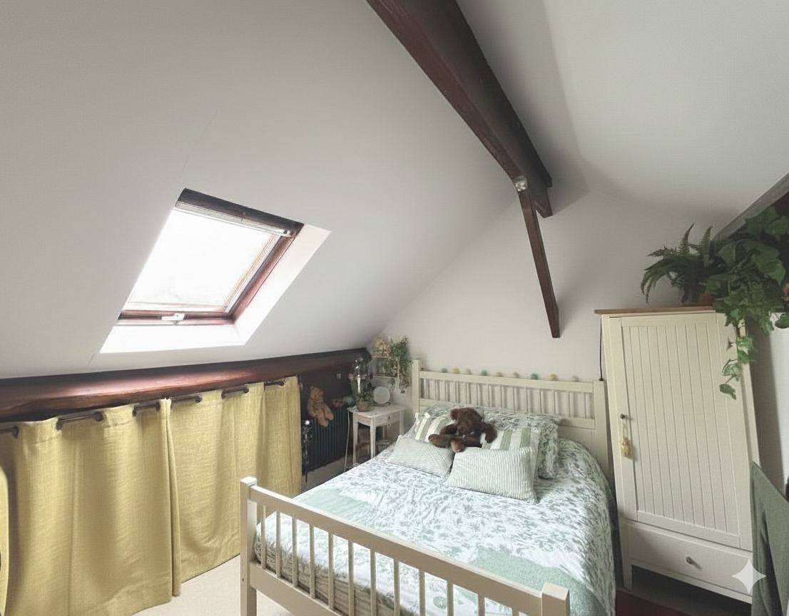 A l'étage, un appartement F2 en duplex.