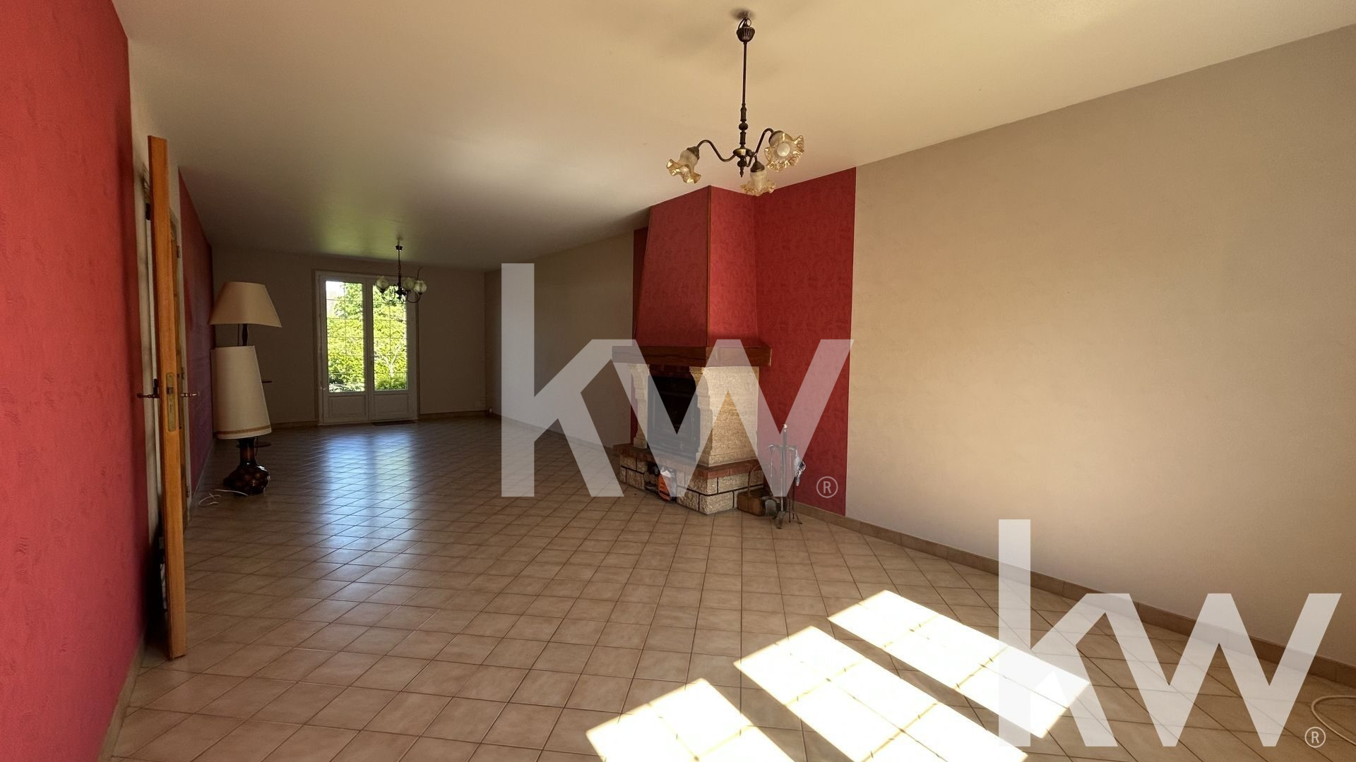 Au rez-de-chaussée : une pièce de vie lumineuse de 38 m² avec cheminée à foyer fermé, une cuisine aménagée et équipée, deux chambres, un bureau et une salle d'eau.