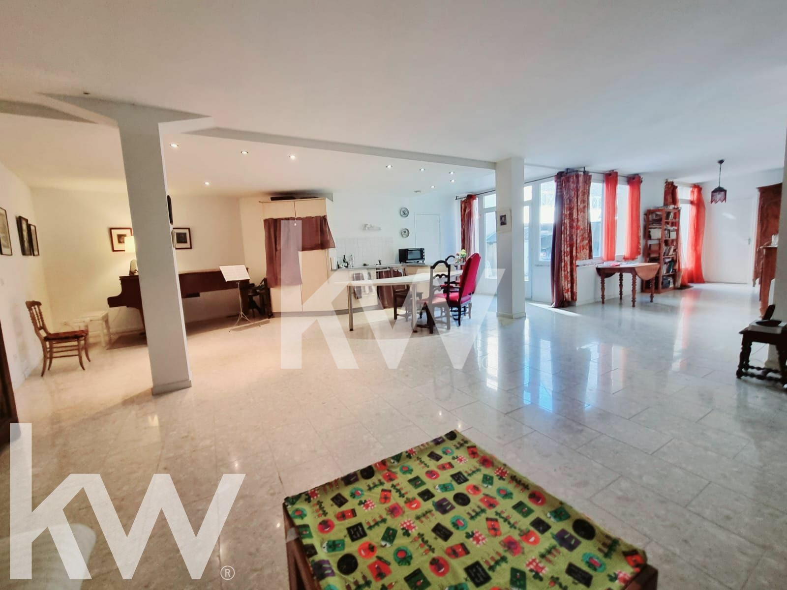 Ce loft est situé au rdc d'une petite copropriété , avec 2 chambres, un grand salon/séjour/cuisine américaine de 70 m², une salle de bains et un wc.