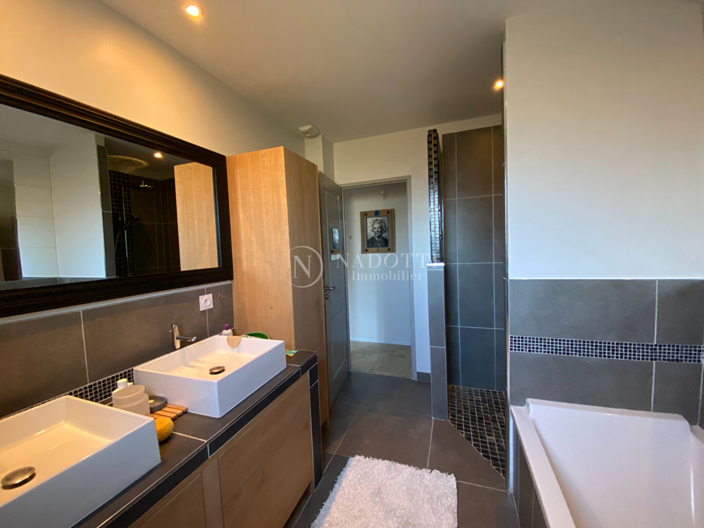 Vous trouverez également une suite parentale constituant un véritable cocon : chambre lumineuse avec vue sur le jardin et accès direct à la terrasse par une porte-fenêtre, dressing indépendant et salle d'eau privative.