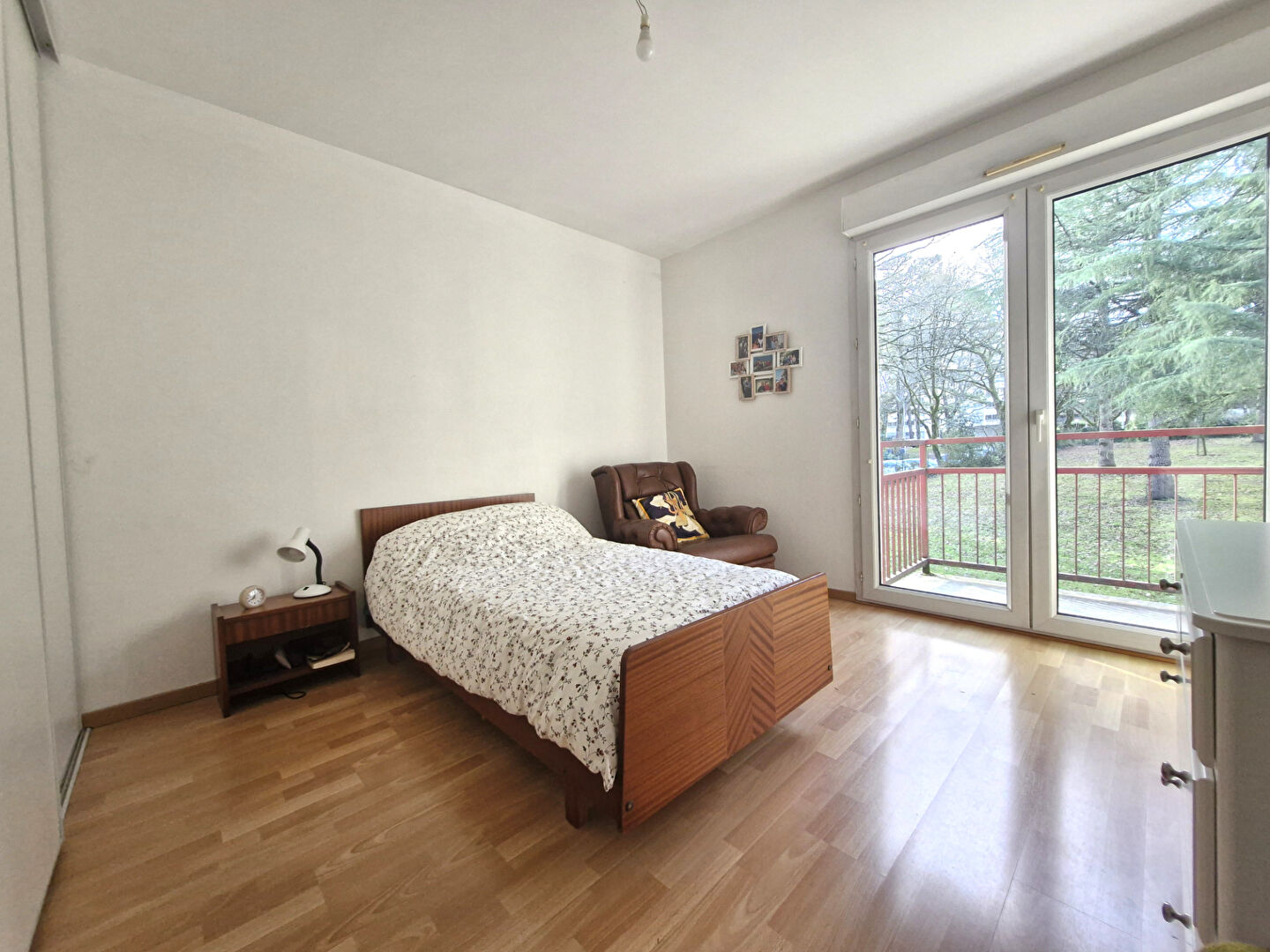 Il vous offre : une pièce de vie exposée ouest, accès balcon sans vis à vis et vue sur le parc. Cuisine (possibilité d'ouverte) aménagée et équipée, dégagement avec placard, chambre avec grand placard et balcon. Salle de douches et toilettes séparés.