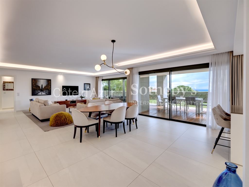 L’appartement bénéficie d’une terrasse de plain-pied de 50 m² et d’un jardin privatif d’environ 200 m², prolongement naturel des espaces de vie, avec une agréable vue mer. Son intérieur lumineux se compose d’un double séjour d’environ 57 m², d’une cuisine ouverte entièrement équipée, d’une suite parentale avec salle de bains et de deux chambres supplémentaires, dont une avec dressing et salles d’eau attenantes, ainsi que des toilettes invités. Une cave et deux parkings en sous-sol complètent ce bien rare.