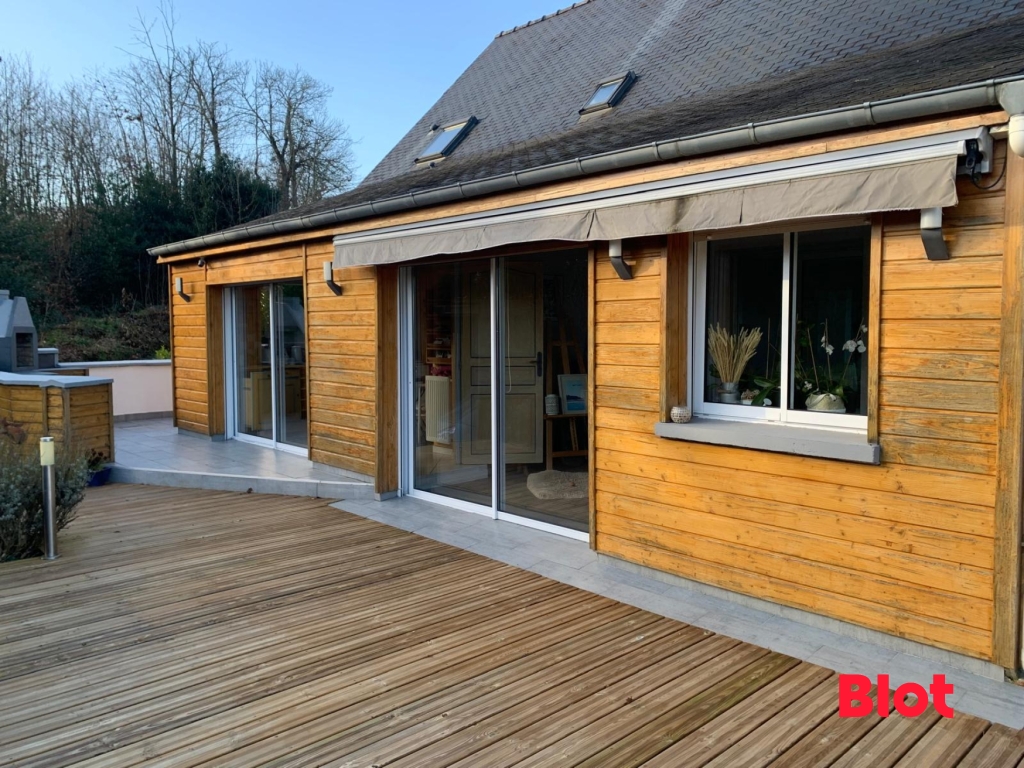 L'équipe Blot Immobilier à Bruz est ravie de vous présenter cette maison familiale élégante d'environ 158 m² au sol, nichée sur un vaste terrain arboré de 1 911 m², loin des zones inondables.