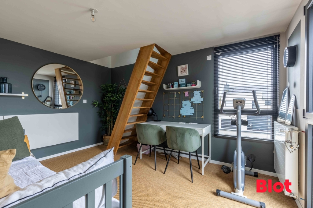 A l'étage : un dégagement, deux chambres avec le couchage possible en mezzanine, une salle d'eau, wc et lingerie. Pour les parents : une suite parentale avec salle de bains et dressing.