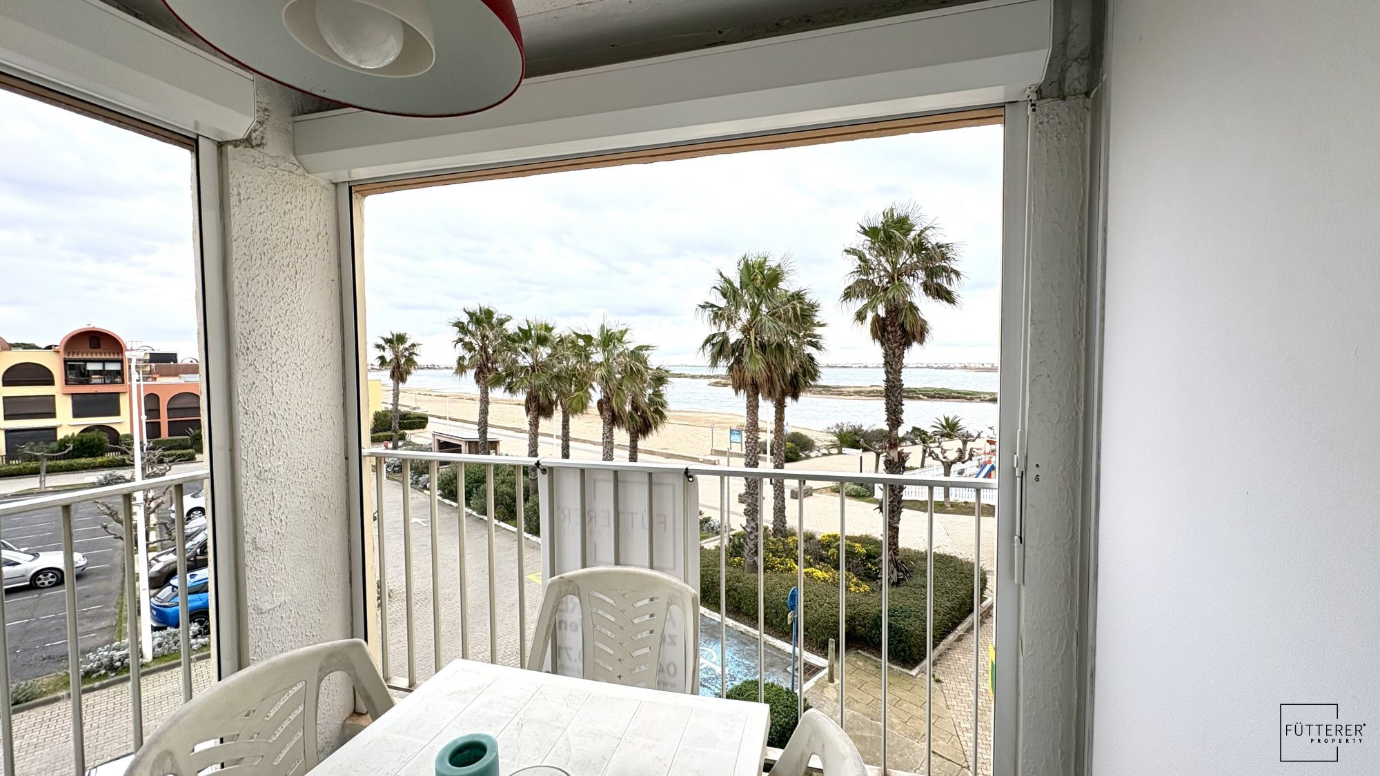 Fütterer Property vous présente à Gruissan Rive Gauche - Grazel : Dans une résidence sécurisée, un appartement traversant de type 2 pièces + cabine de 36 m² avec une vue exceptionnelle et dégagée sur la plage du Grazel et la mer.