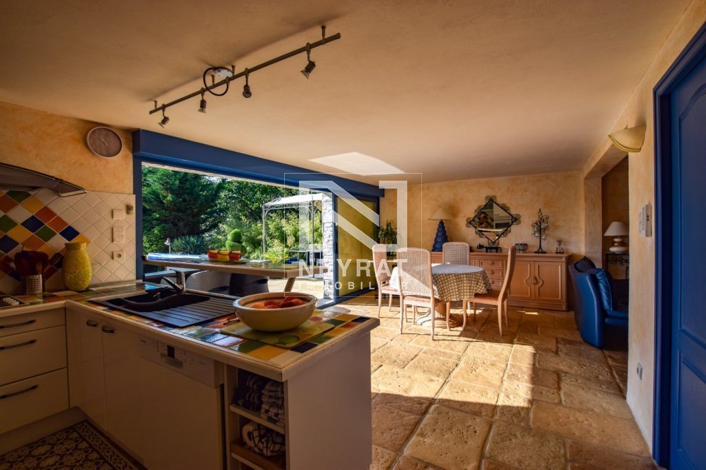 - Le séjour et le salon, agrémenté d'une cheminée, s'ouvrent sur une cuisine équipée,