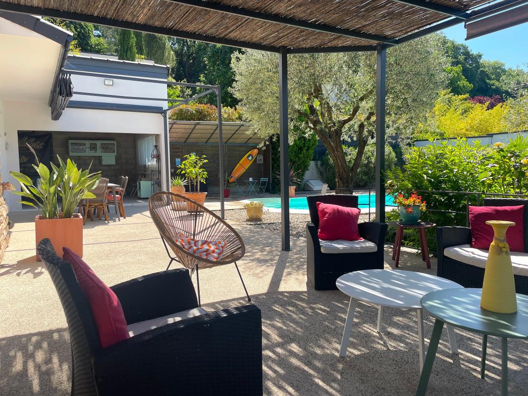 En extérieur, vous profiterez d'une très belle piscine avec terrasse en partie couverte exposé plein SUD. Une belle vue et de beaux couchers de soleil vous attendent.