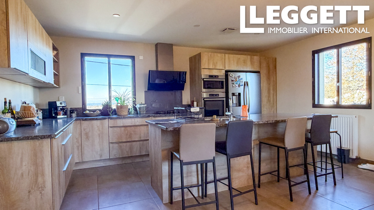 Le rez-de-chaussée propose des espaces fonctionnels : cave, garage, atelier et chaufferie. Le premier niveau accueille quatre chambres, une salle de douche, des WC indépendants ainsi qu'une véranda lumineuse. En prolongement, un bel espace de vie convivial réunit séjour et cuisine ouverte équipée, climatisé, agrémenté d'un poêle à bois, et donnant sur terrasse.