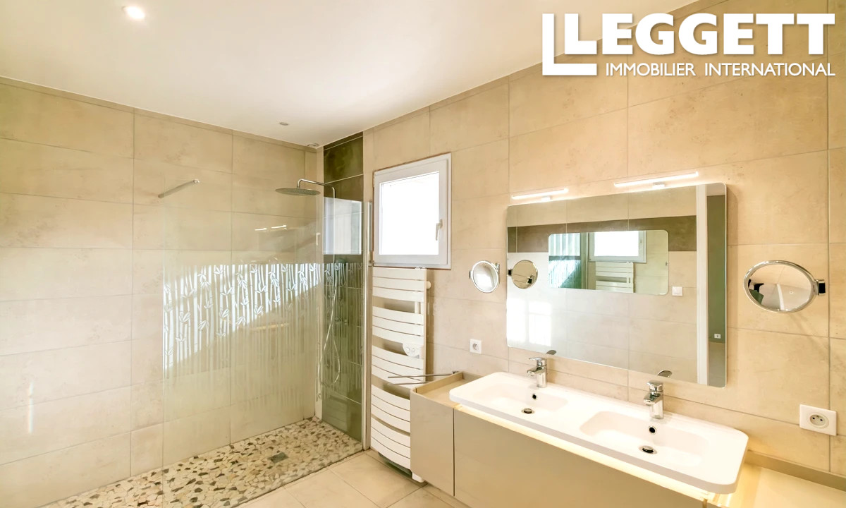 A42173CYV11 - Villa indépendante située dans un quartier résidentiel calme de Narbonne, à 5 minutes du centre-ville. Construite en 1992, elle offre des espaces modulables, une grande terrasse plein sud d'environ 180 m² avec vue dégagée et une piscine 10 x 5 m avec volet électrique. Jardin clos, cuisine d'été, cave à vin, buanderie et carport pour trois véhicules. Quatre chambres, dont trois disposent déjà de leur salle d'eau privative, avec la possibilité de créer une quatrième suite avec salle d'eau. Équipements performants incluant panneaux solaires, chauffe-eau thermodynamique et forage. Maison idéale proche des commodités et du littoral.