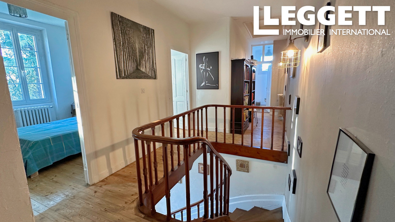 A41966BBE17 - Magnifique manoir en pierre, niché au coeur d'un vaste jardin. Entièrement rénové, les éléments d'origine ont été preservés. Les pièces lumineuses et spacieuses aux hauts plafonds ont des poutres apparentes. Il y a une vaste espace de vie ouvert (60 m²) comprenant salon, salle à manger et cuisine, avec portes-fenêtres donnant sur la terrasse et le jardin arboré agrémenté d'une piscine.