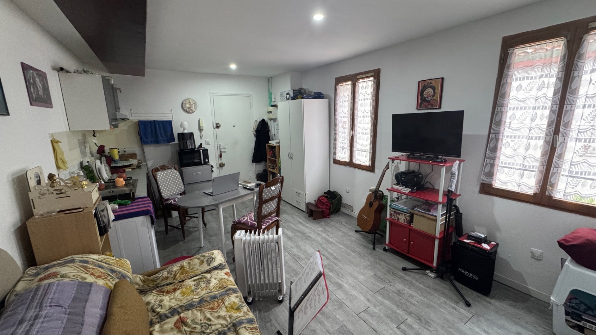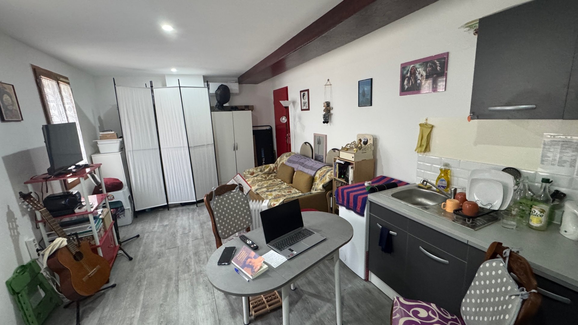 PERPIGNAN RUE REMPART VILLENEUVE (QUAI VAUBAN / CLEMENCEAU), dans une petite copropriété sans charges, grand studio de 21 m² situé au dernier étage. Séjour / SAM / cusine ouverte aménagée, , SDE....Actuellement loué 280€. Rénovation de qualité avec double vitrage , climatisation, électricité refaite. Idéal locatif. RARE.