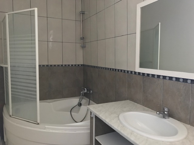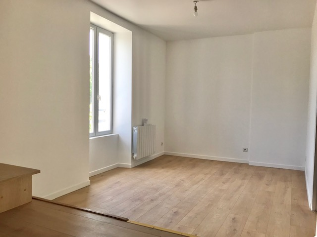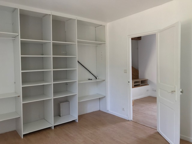 Appartement en Duplex de 61,42 m2 en loi Carrez (70 m2 au sol) : entrée, cuisine ouverte sur salle à manger (22,66 m2), séjour (11 m2), salle de bains, toilettes, deux chambres. Cour privative (21 m2).
