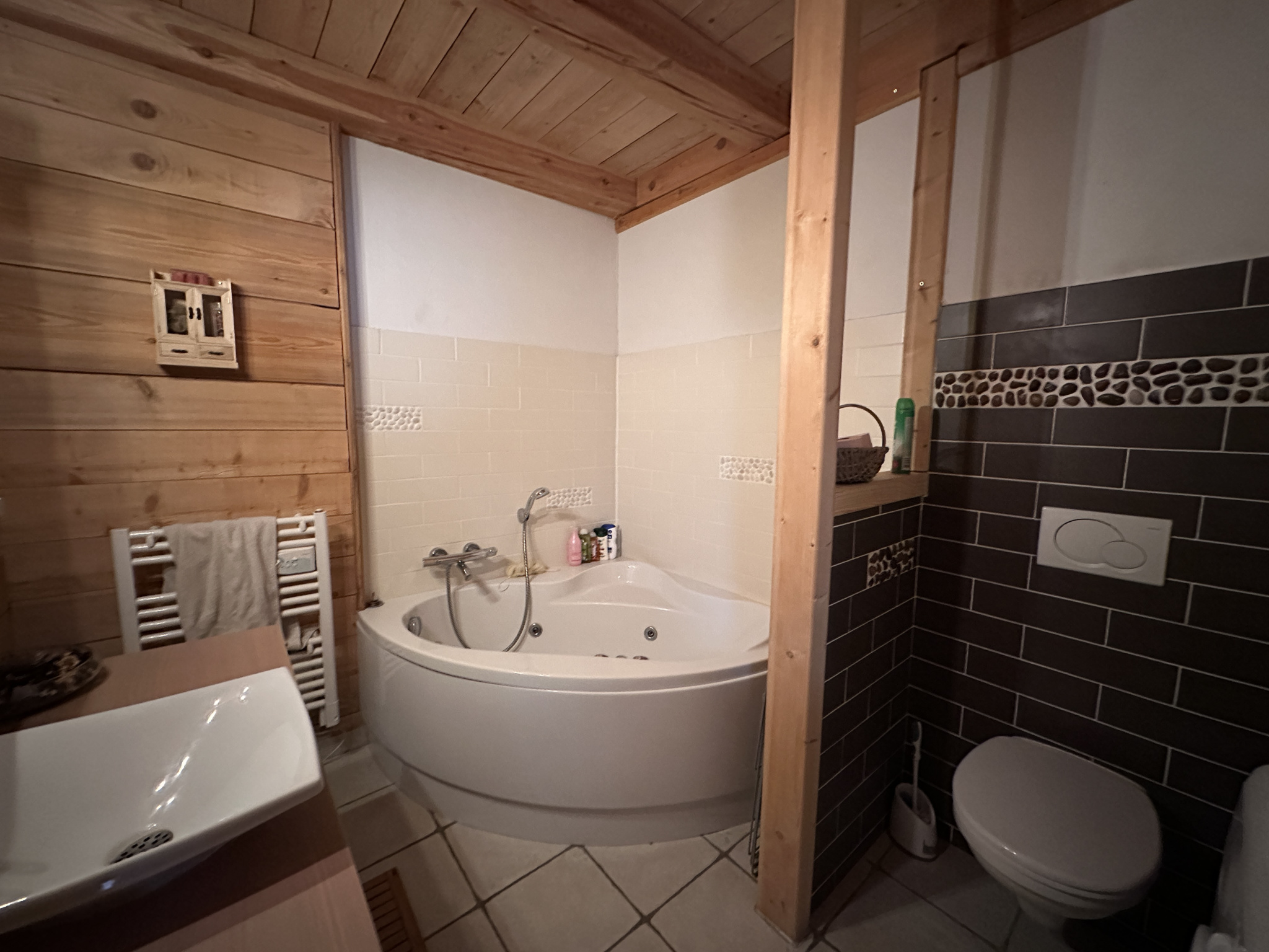 Situé dans un des hameaux de Valmeinier, ce chalet est composé de 3 appartements formant une petite copropriété avec 3 copropriétaires différents. Ce chalet se situe sur un terrain de 292 m2 avec des places de stationnement (utilisables en dehors des périodes hivernales).