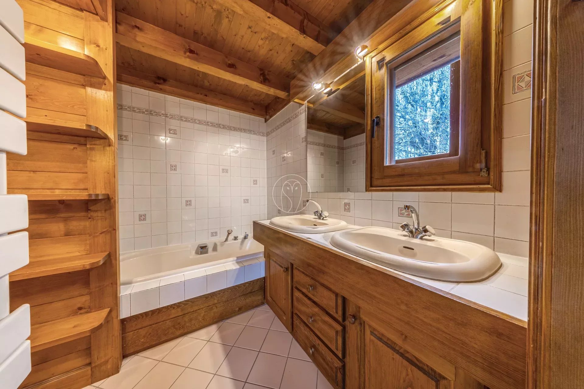 Au rez-de-chaussée, vous découvrirez un grand garage avec un espace dédié aux skis, ainsi que deux chambres disposant chacune d'un coin lavabo, se partageant une salle de bains. Une chambre dortoir avec lits superposés et salle de bains, une buanderie et des WC séparés complètent ce niveau.