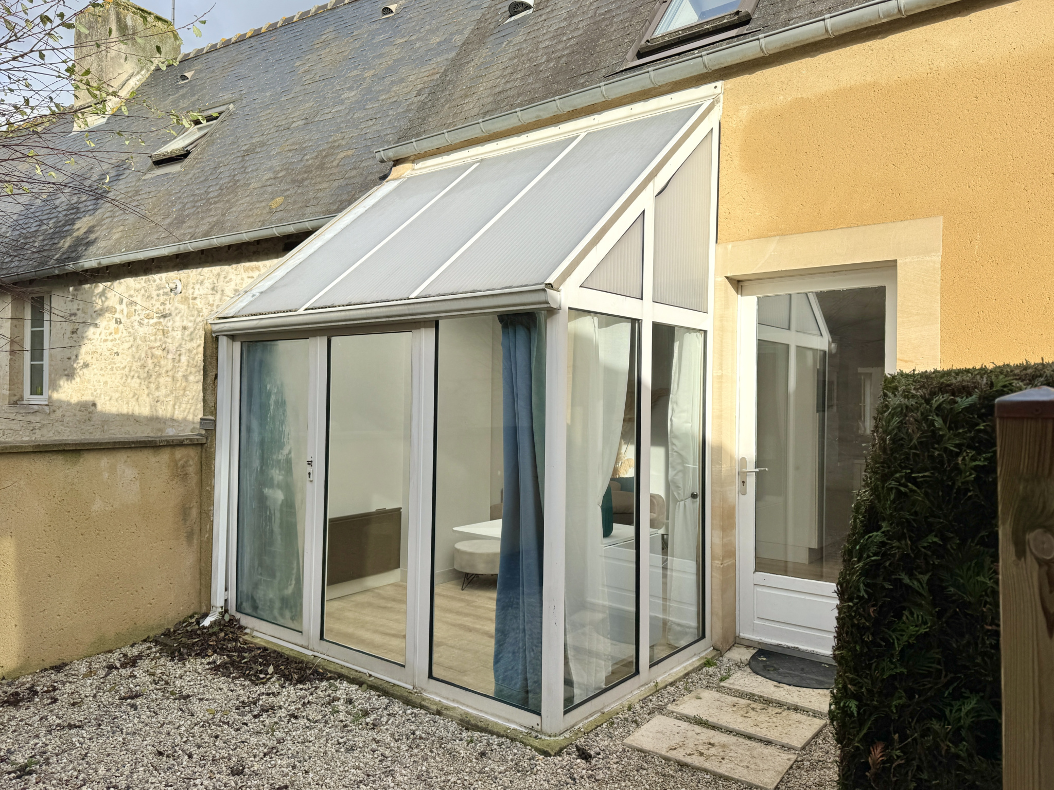 Le rez-de-chaussée se compose d'une agréable pièce de vie avec cuisine ouverte, aménagée et équipée, prolongée par une véranda donnant accès à un espace extérieur privatif, à l'abri des regards, idéal pour profiter des beaux jours en toute tranquillité. À l'étage, vous trouverez une chambre confortable ainsi qu'une salle d'eau rénovée.