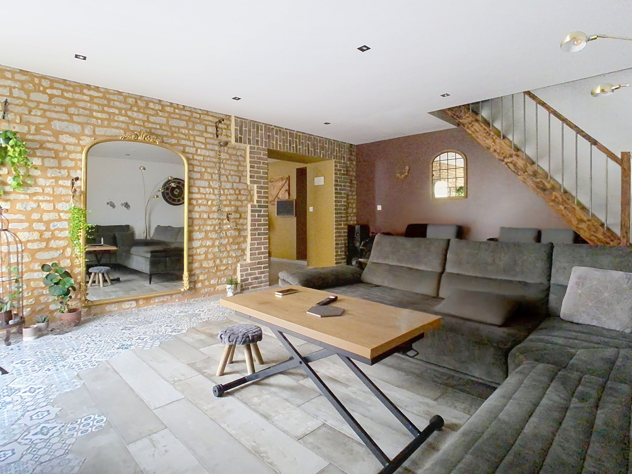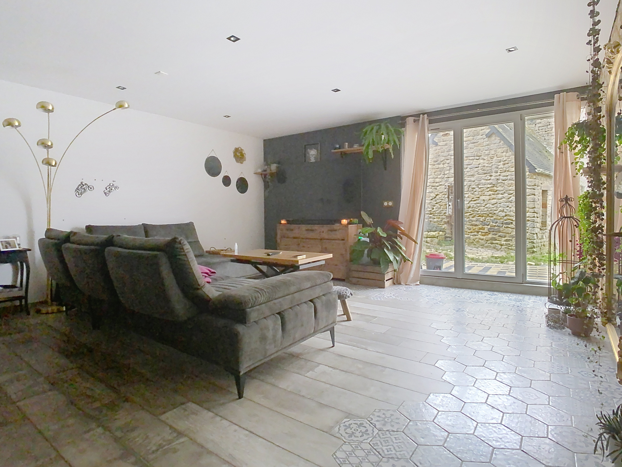 Le tout sur un terrain clos de murs de 1300 m2 environ, à l'avant cour, jardin, terrasse et poulailler à l'arrière.