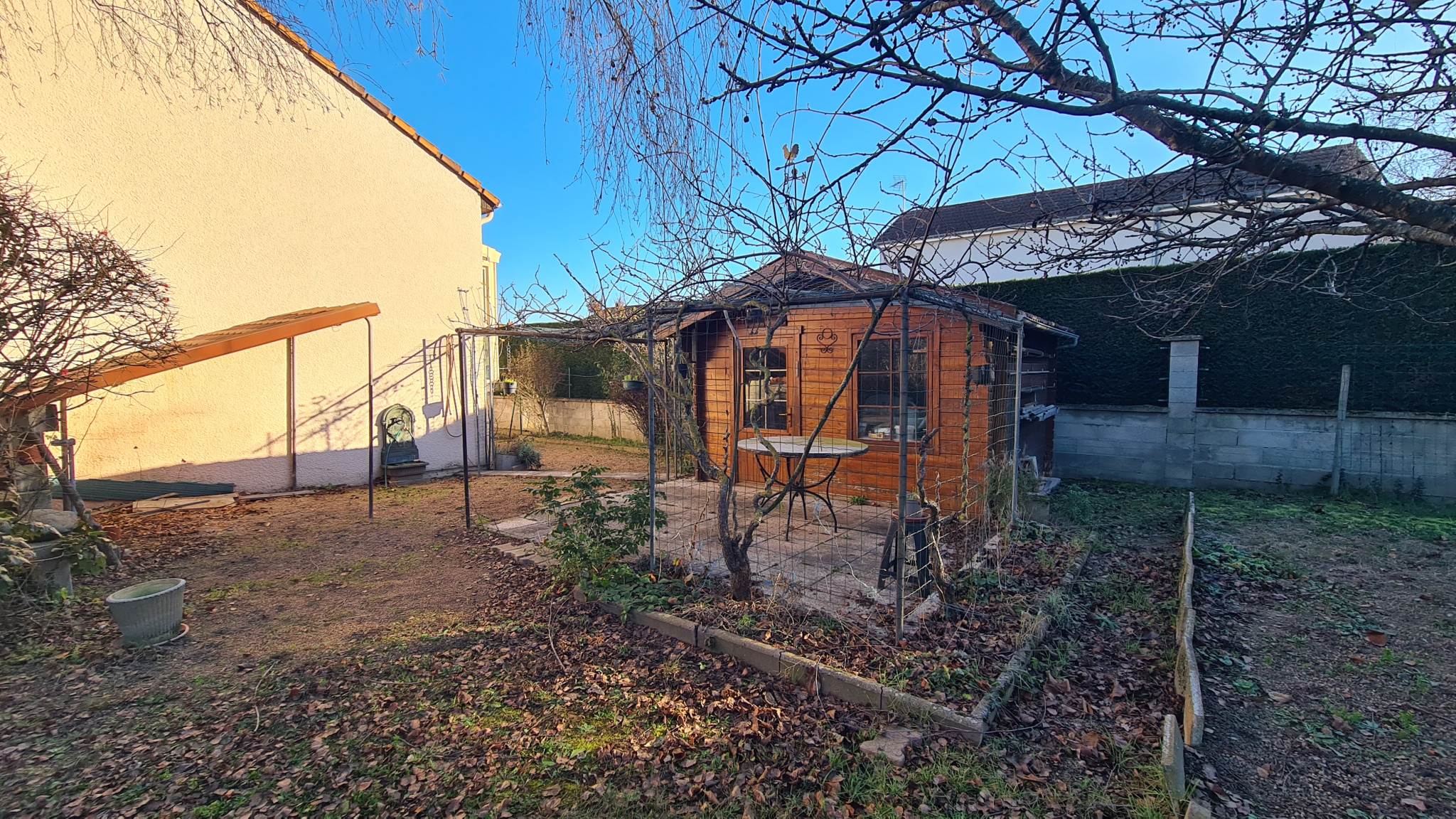 joli terrain de 921 m2 avec petite dépendance en bois . Double vitrage , volets roulants , chauffage gaz .DPE D