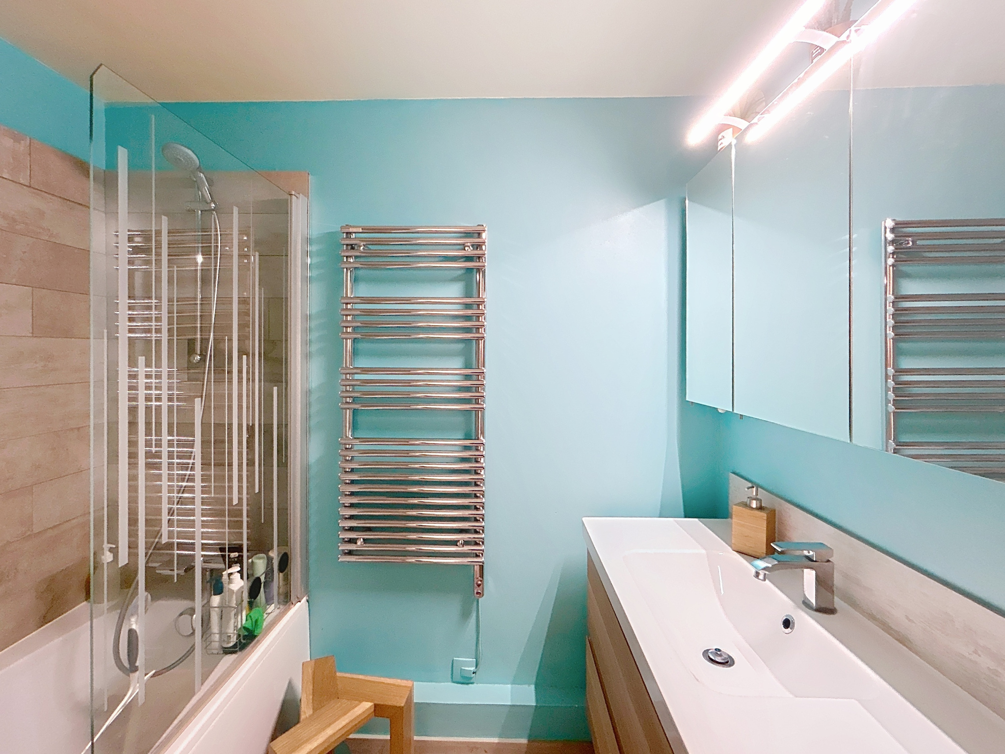 Les prestations complètent la qualité du bien : climatisation réversible (pompe à chaleur), chauffage individuel électrique, double vitrage. Un box fermé de 13 m2 peux etre vendu pour 25 000 euros.