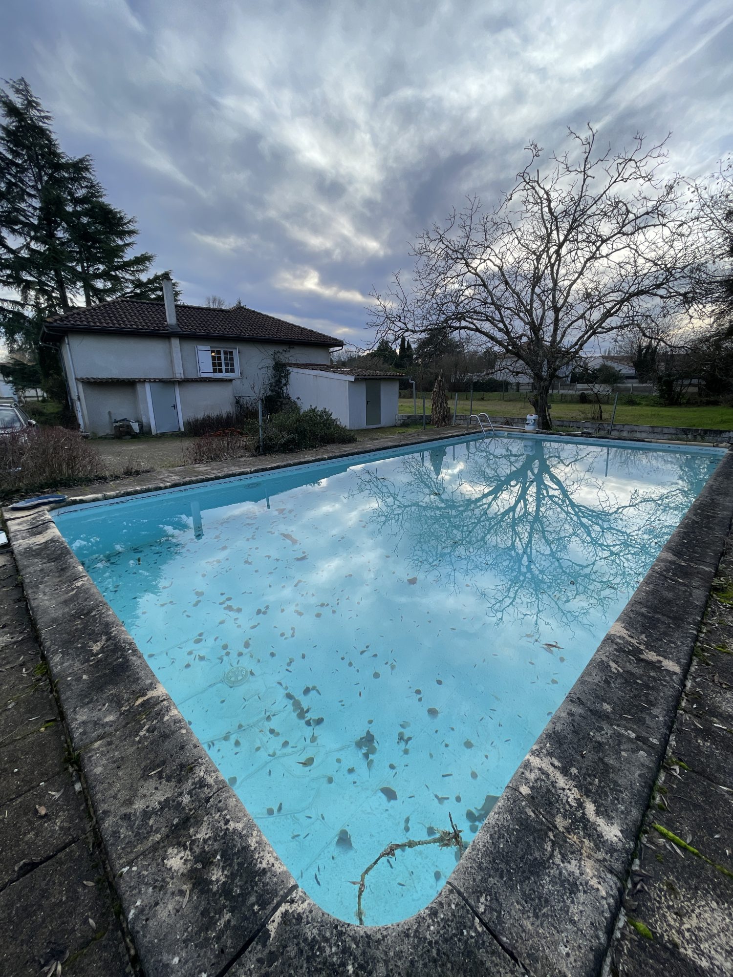 La piscine maçonnée peut fonctionner au chlore ou au sel, elle est parfait état de marche, seul les margelles et abords seront a refaire.