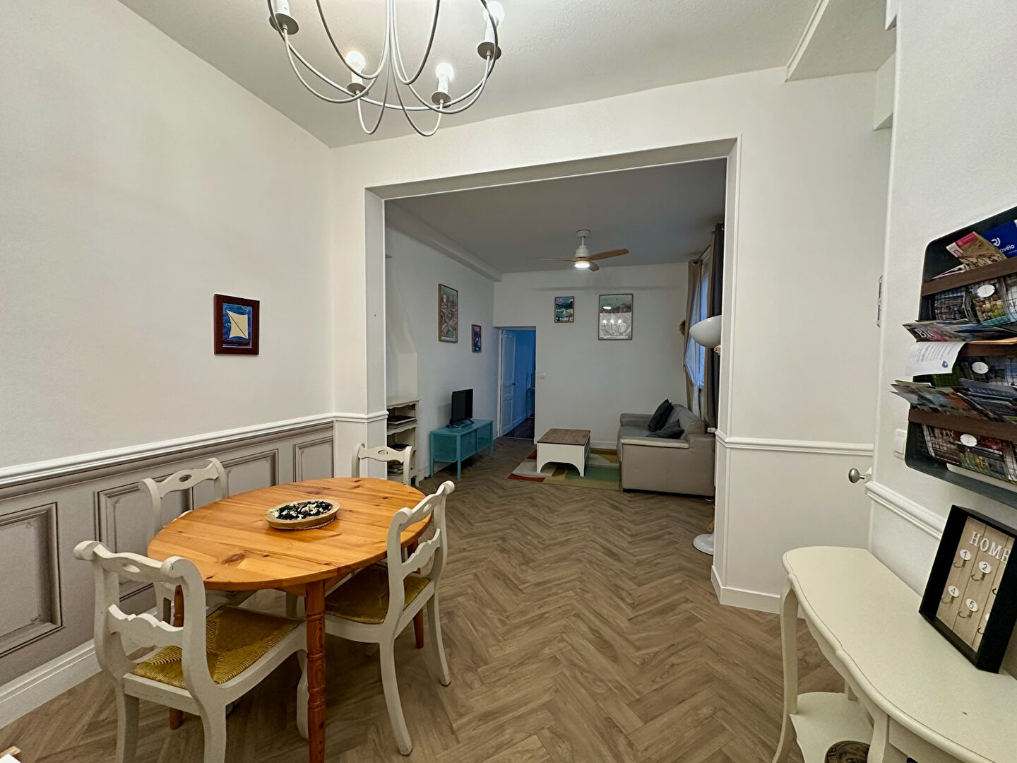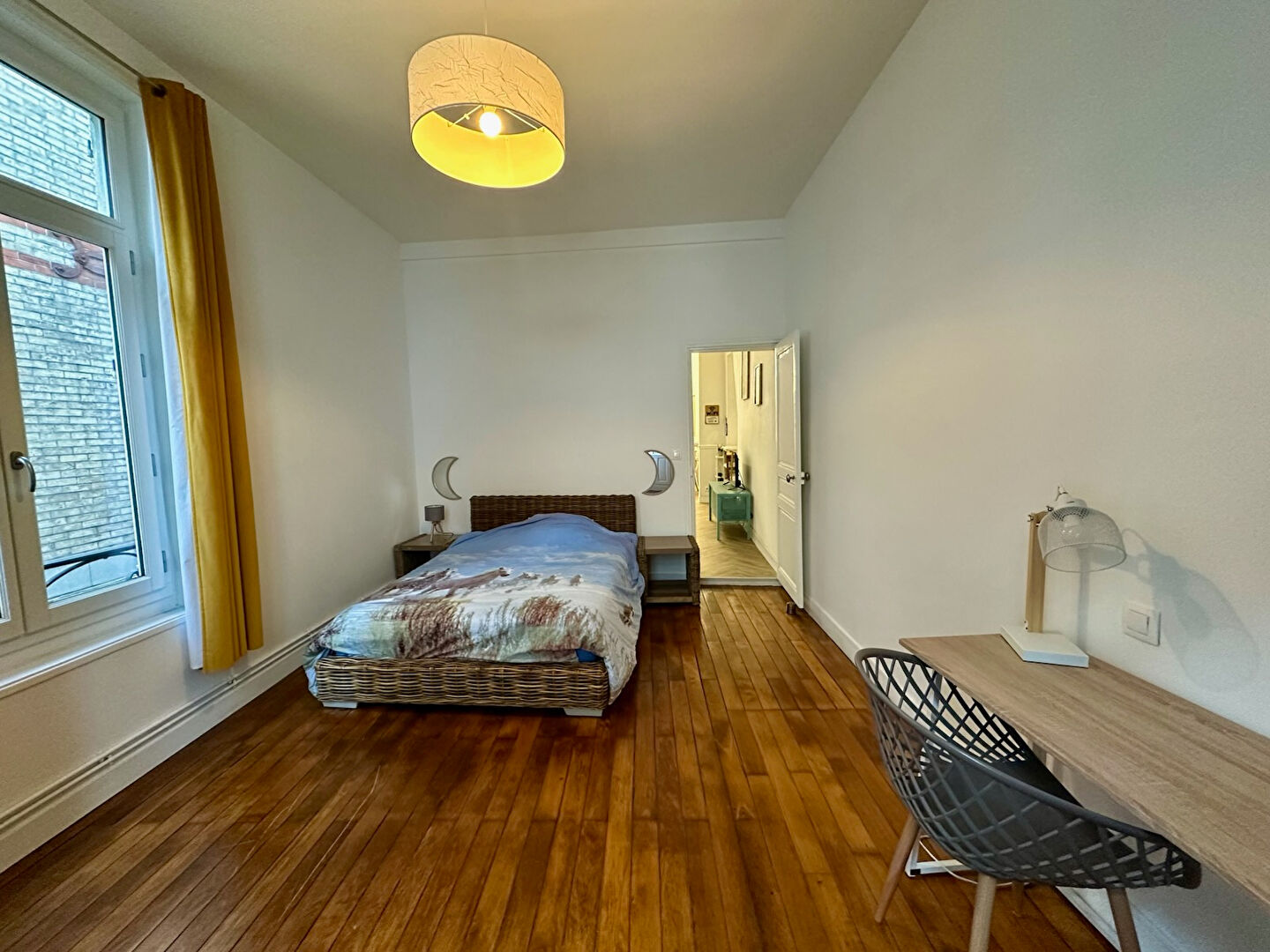 Situé au premier étage il est composé d'une entrée, un grand salon/séjour avec partie salle à manger, une cuisine équipée et aménagée, toilettes, salle d'eau, une grande chambre