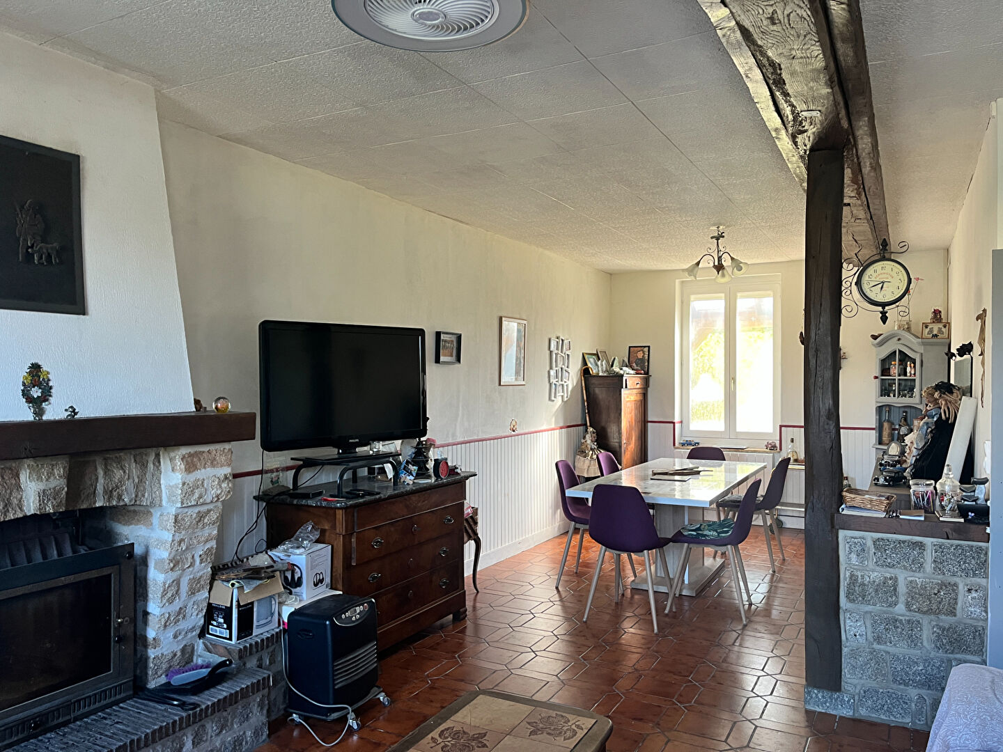 A deux pas de bourg, maison ancienne de plain-pied, sur parcelle de 1374m², comprenant couloir desservant cuisine aménagée, séjour salon avec cheminée insert, 2 chambres, pièce (bureau possible), salle d'eau avec wc,, grenier aménageable. Cellier. Garage indépendant avec atelier.
