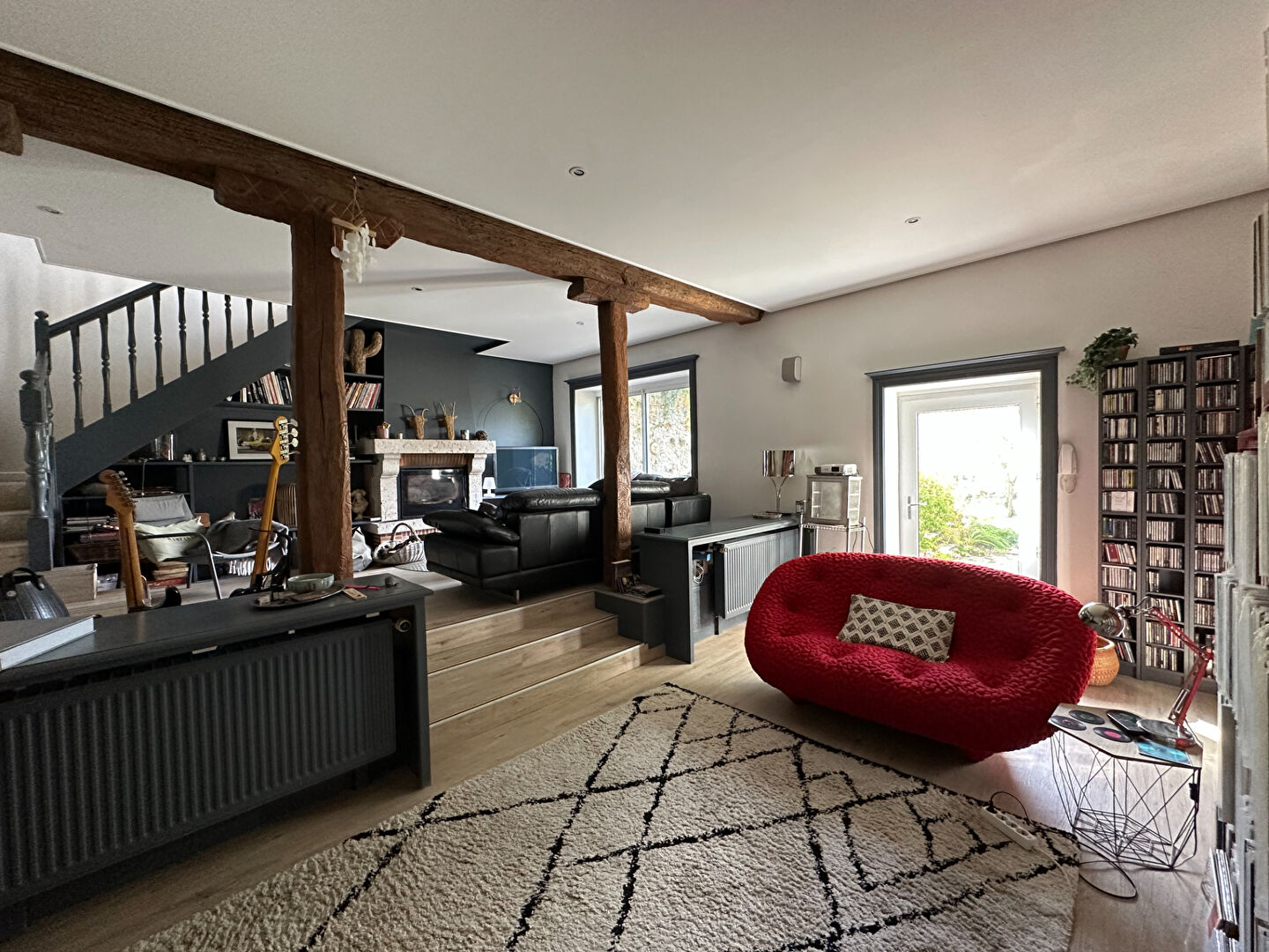 AU RDJ un salon double avec cheminée insert et ouverture directe sur terrasse et jardin