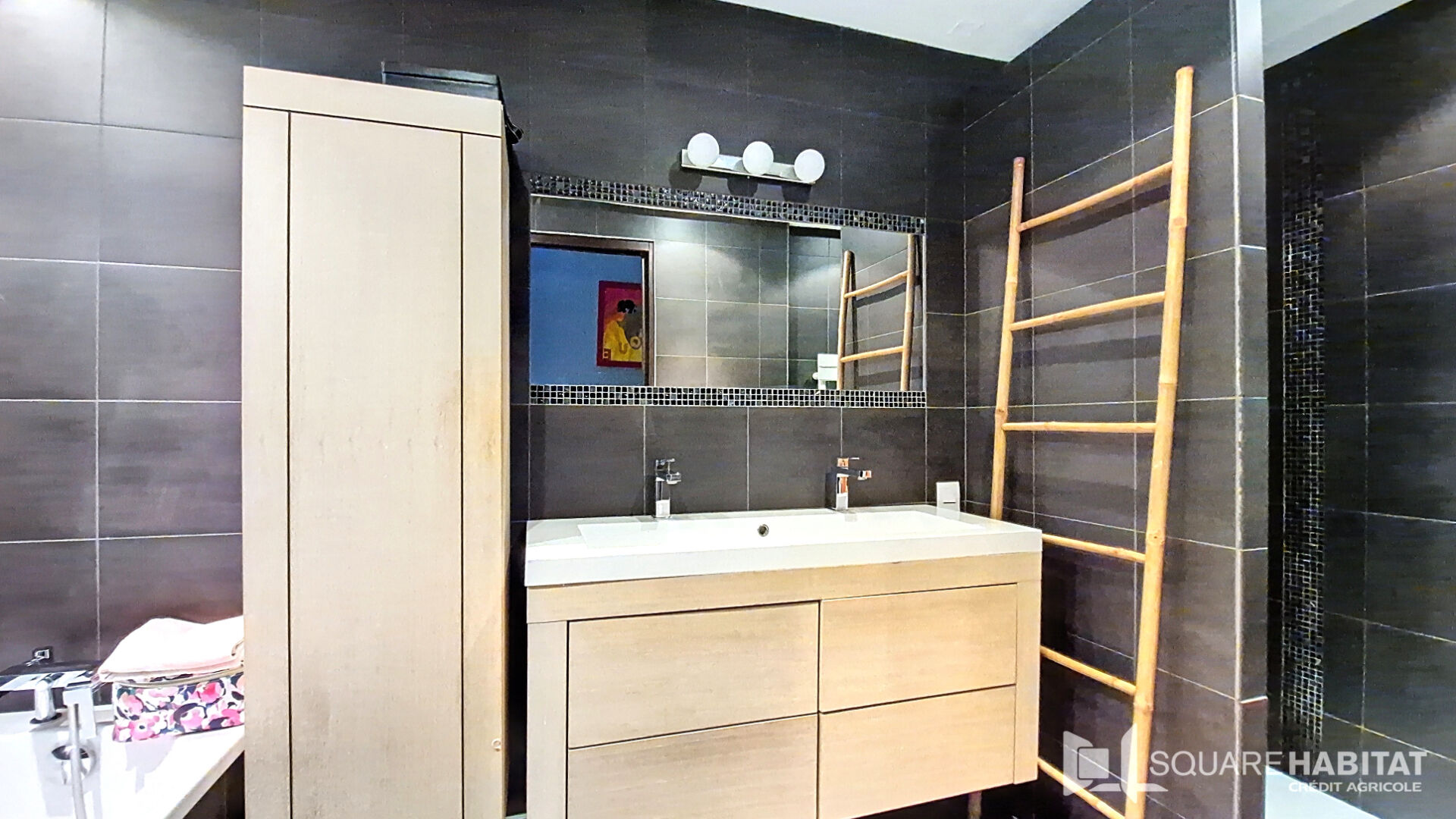 bains avec baignoire et douche à l'italienne, un WC indépendant.