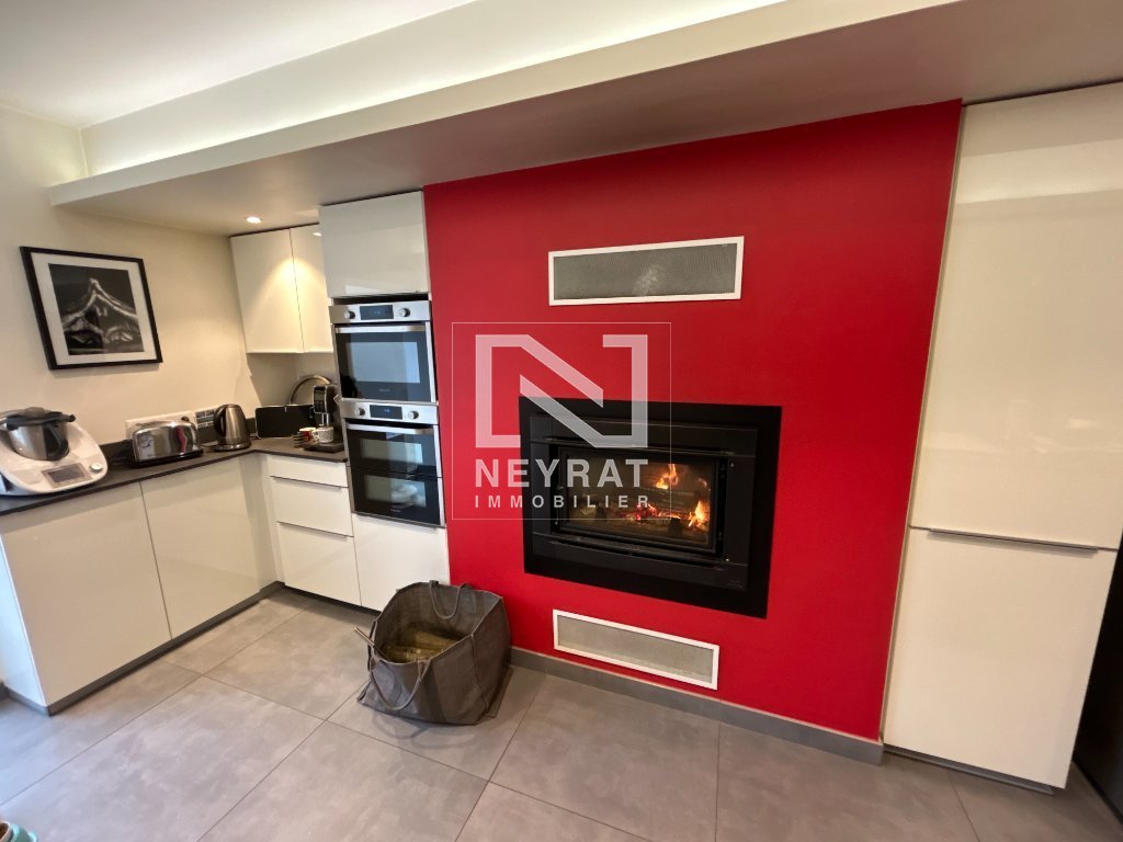 La magnifique pièce de vie, agrémentée d'un plafond cathédrale, se distingue par sa cuisine ouverte entièrement aménagée et équipée. Imaginez-vous savourer des moments chaleureux autour de la cheminée à insert pendant les soirées d'hiver.