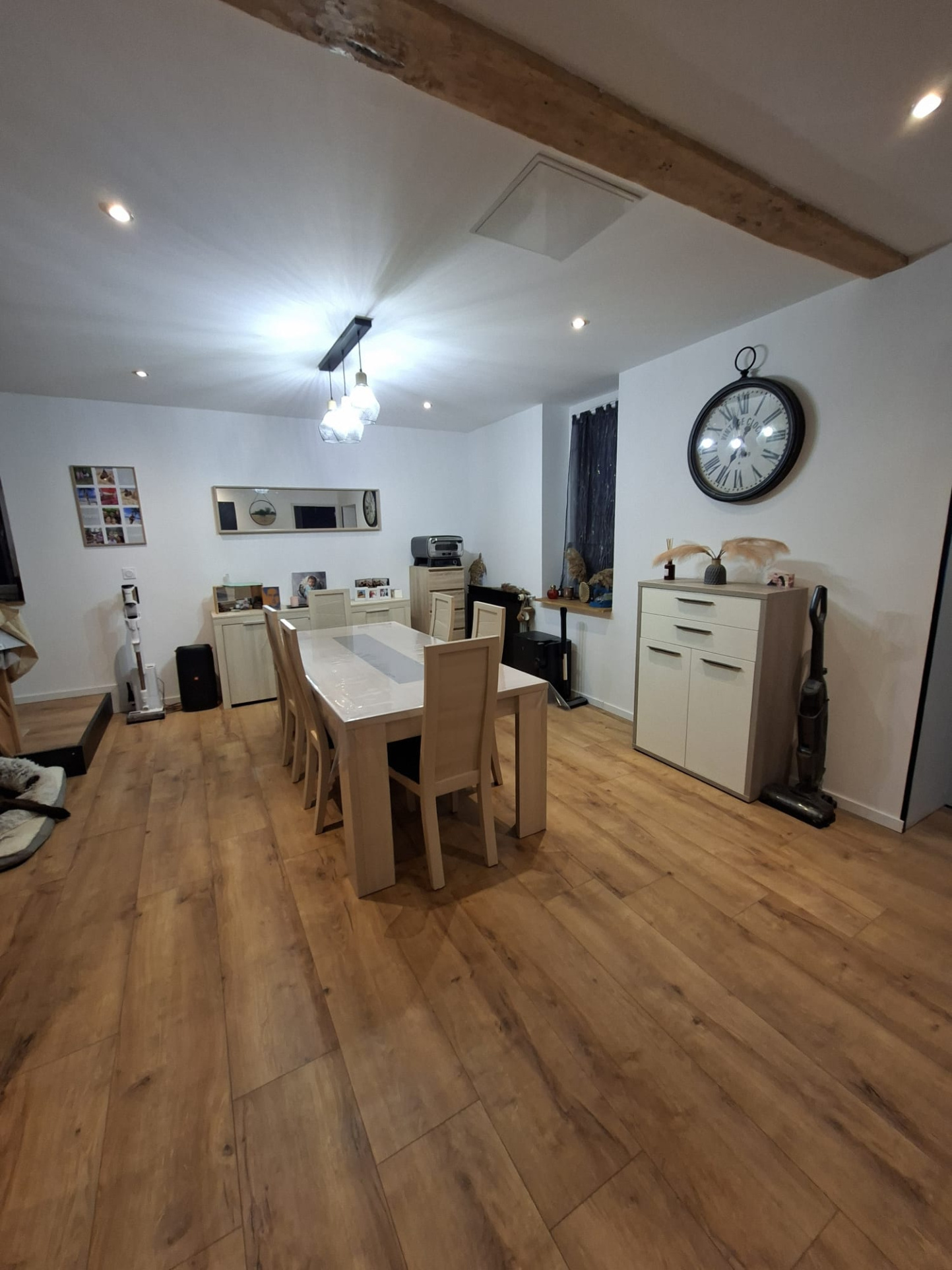 La maison est complétée par deux granges (60 et 70 m2), cave voutée et buanderie en sous-sol. Chaudière fioul basse température de 2008, radiateurs électriques à l'étage, 2 ballons d'eau chaude, VMC, bonne isolation, murs en pierre (50 cm). Depuis 2022 : rénovation entière, création chambres à l'étage, double vitrage PVC, électricité refaite.