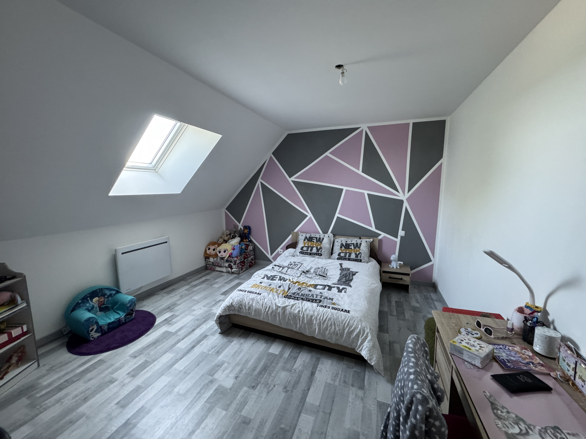 A l'étage, un palier dessert trois chambres mansardées, salle de bains et WC séparé.