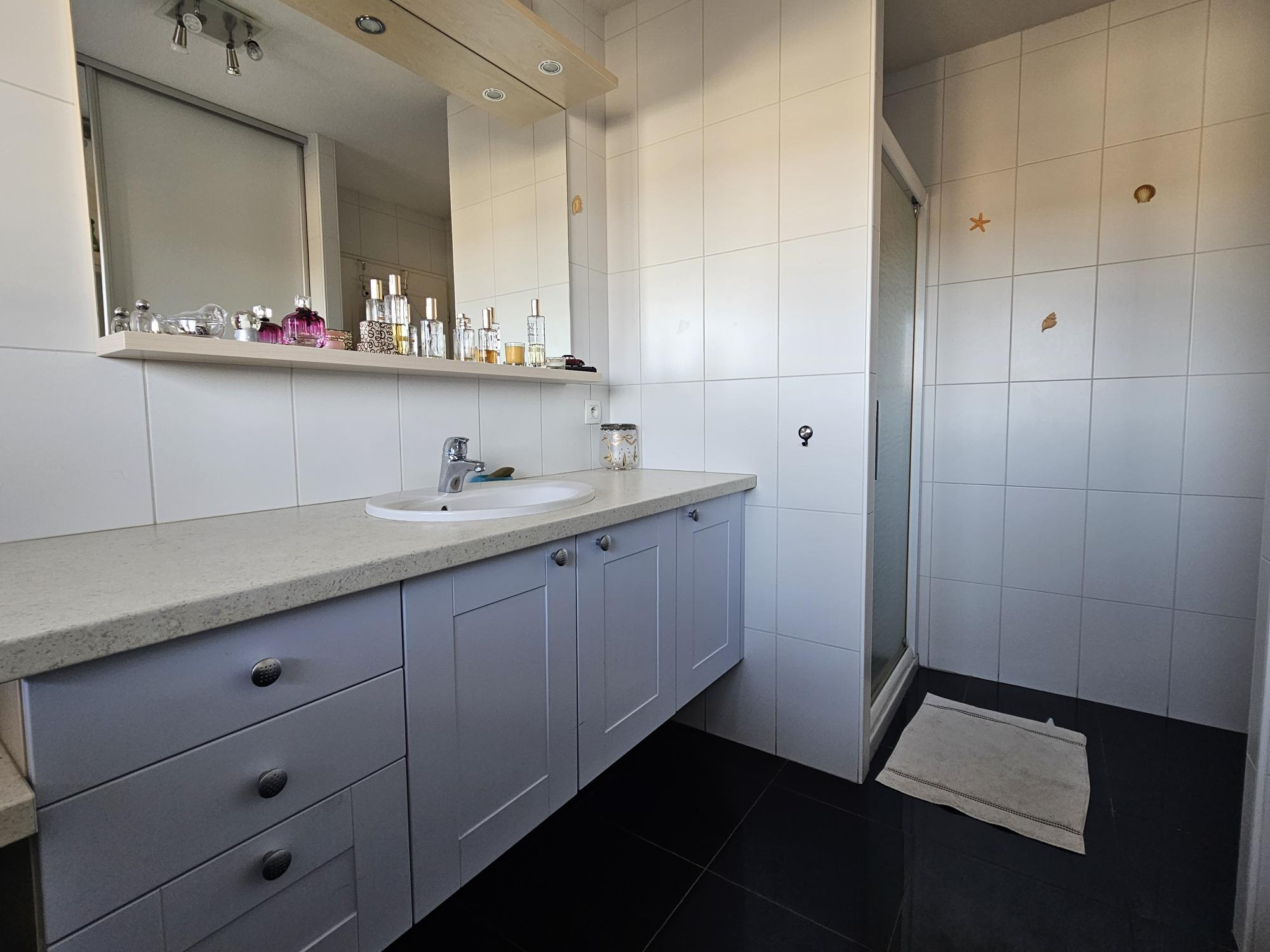 Cet appartement est composé d'une entrée avec deux placards intégrés, d'une cuisine semi-ouverte sur la salle à manger avec accès direct à la terrasse orientée plein sud.