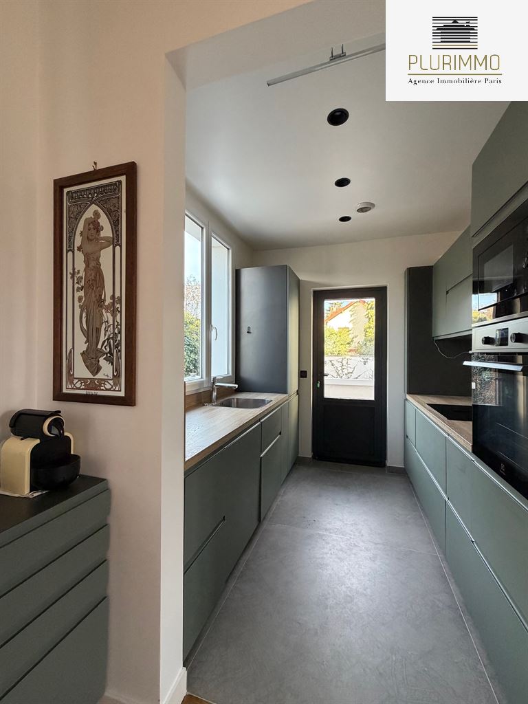 Bourg la Reine. Au fond d'une impasse, maison entièrement refaite à neuf de 102m2 au sol (88m2 loi Carrez) avec Jardin de 235m2 et garage. Elle se compose d'une entrée, un double séjour avec cuisine attenante donnant accès au jardin, un wc invité. A l'étage, deux chambres et une salle de bains avec wc. Au dernier étage une chambre et une salle de douche avec wc. Sous sol total avec buanderie, rangements et garage.