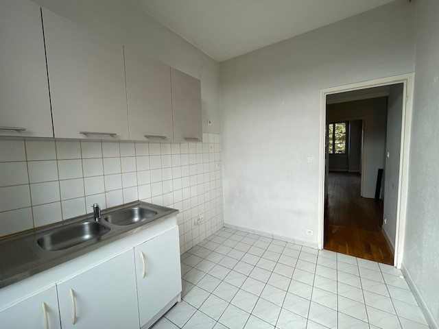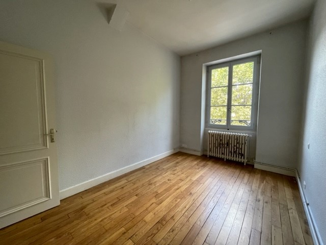 CUSSET - Cours Lafayette . Appartement familiale de 83m2 se composant d'une entrée, un séjour, une cuisine fermée aménagée, SDB aménagée, sanitaires séparés ainsi que 3 chambres (dont 2 donnant sur cour intérieure). Belles hauteurs sous plafond. Chauffage individuel au gaz. L'appartement est complété par des combles aménageables avec poutres apparentes soit une surface de 92.7m2 au sol à développer en habitation (tout ou partiellement selon vos besoins) et d'une belle cave voûtée.