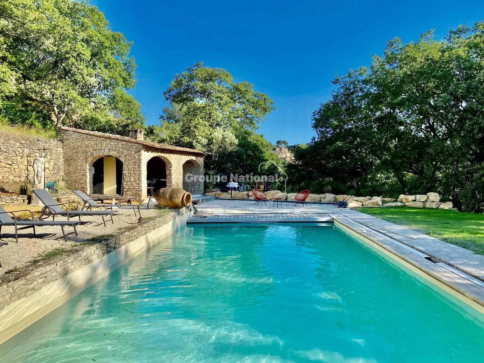 Edifiée sur un terrain clos et arboré de 2735 m², elle bénéficie d'un environnement préservé, sans nuisances ni vis à vis.