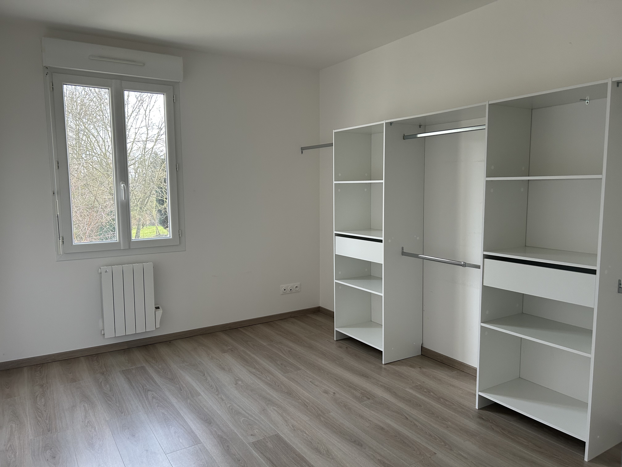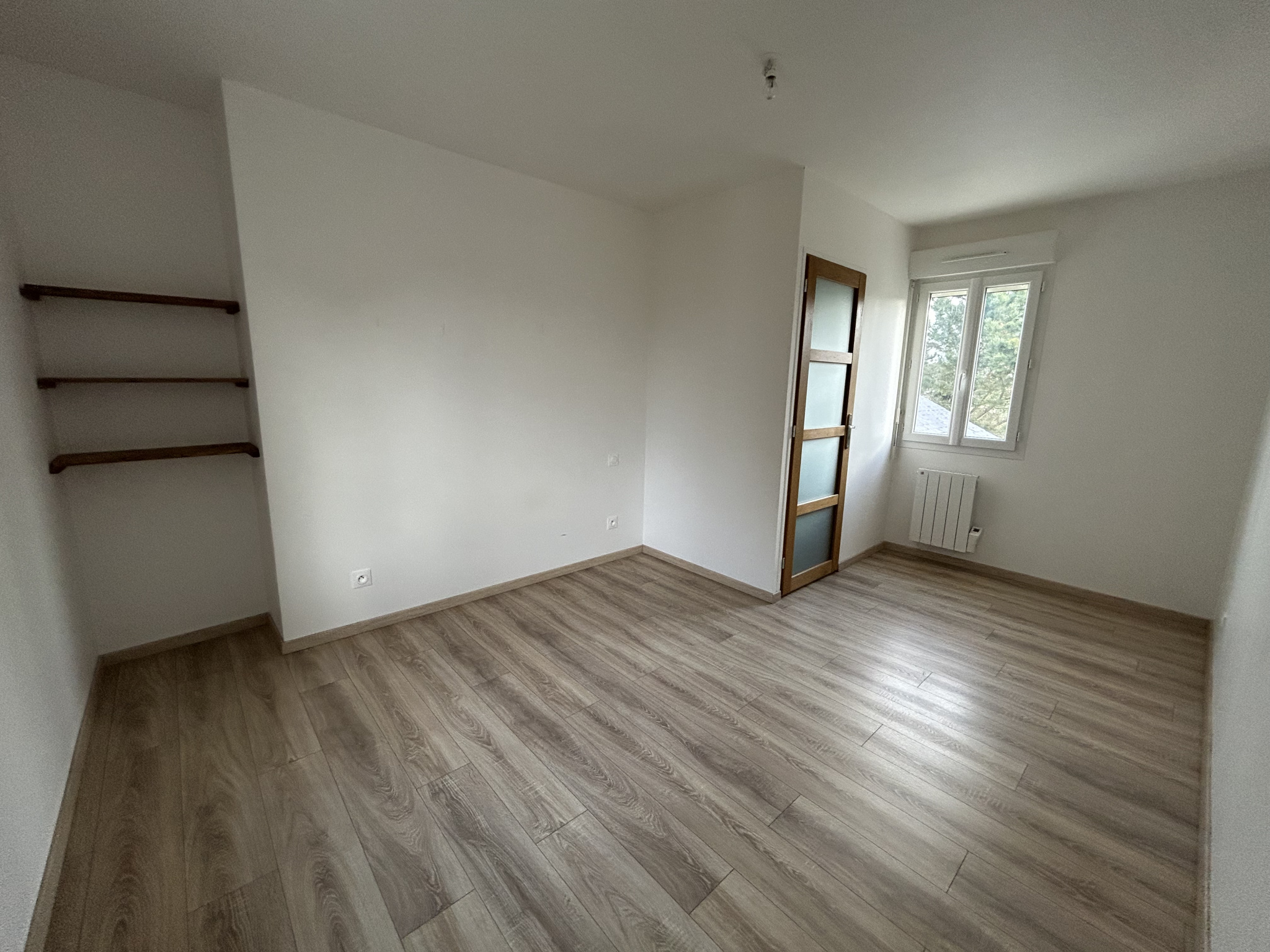 Chauffage électrique et poêle à granulés. Menuiseries en double vitrage PVC avec volets roulants manuels.