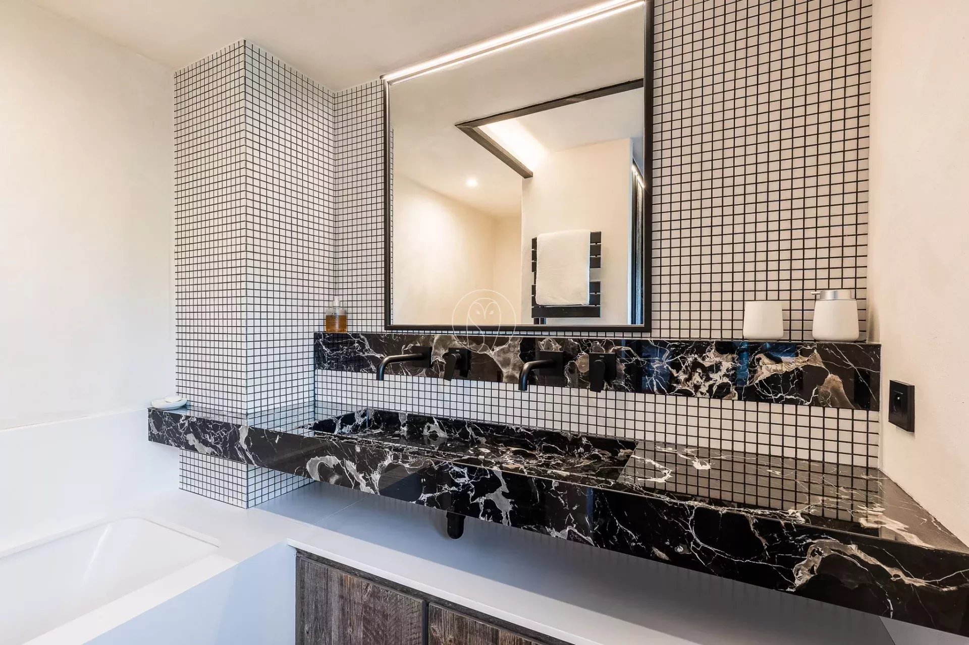 Au cœur du village, cet appartement situé dans une petite résidence sécurisée et entièrement rénovée haut de gamme se trouve au 1er étage et offre une surface d’environ 77 m².
