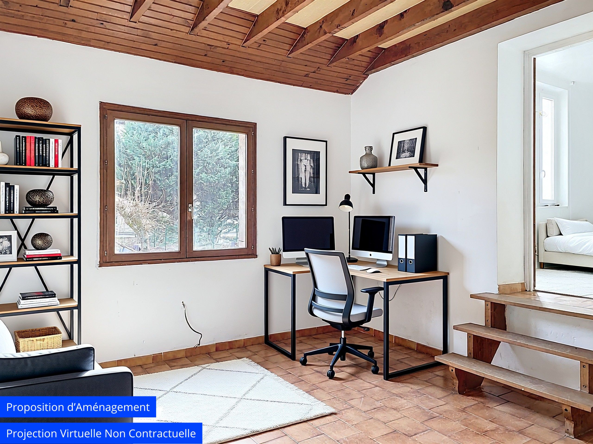 A l'étage, desservi par un escalier bois , 2 belles chambres avec parquet. Il est possible de faire une extension à l'état de 18 m2.
