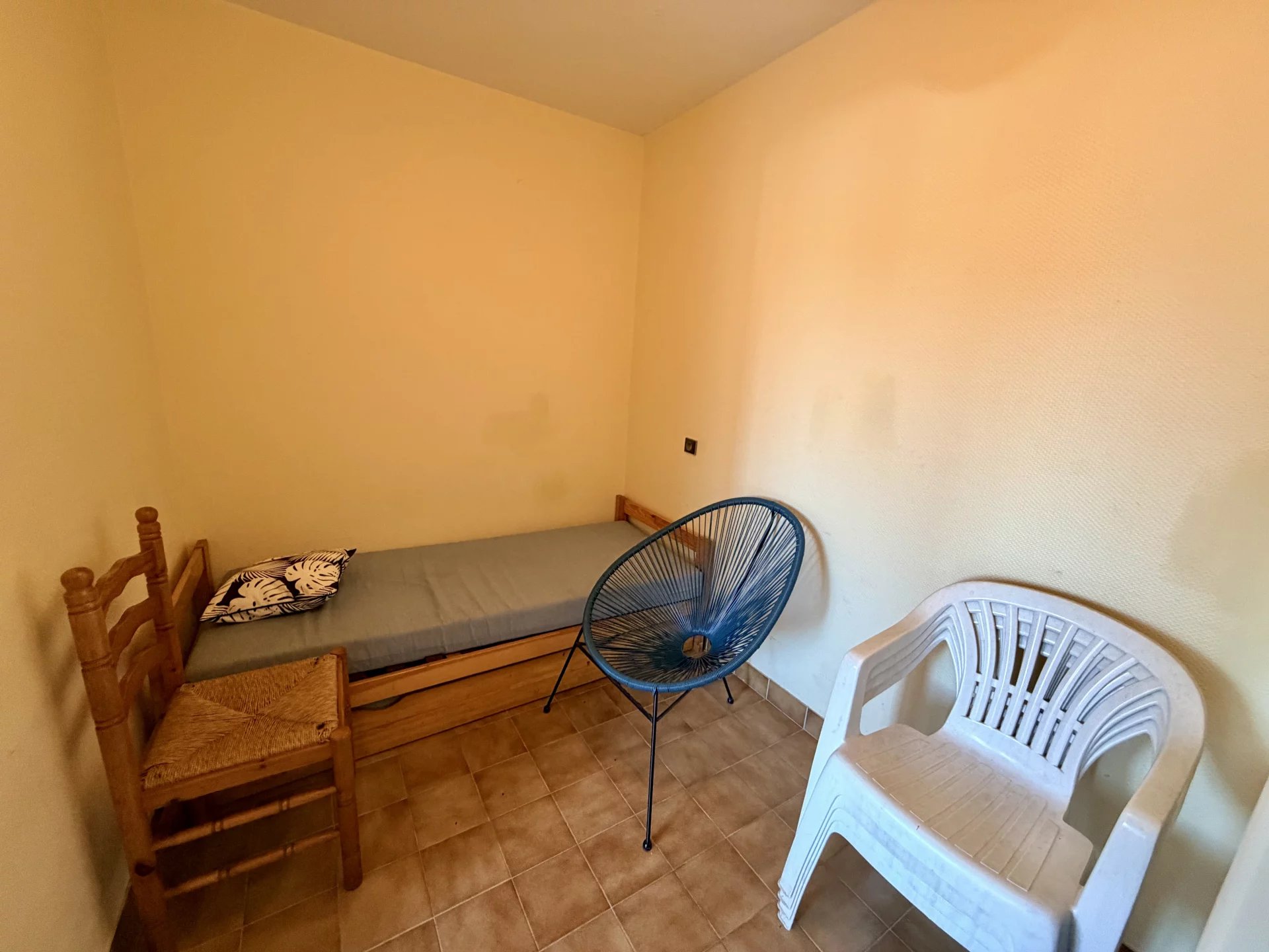 Exclusivité. Situé au sein de la Résidence Thalassa à Anglet, appartement de type T1 Bis au rez-de-chaussée de la résidence avec jouissance exclusive d'un jardinet et place de stationnement extérieur. Voici la composition succincte du bien : entrée sur dégagement, buanderie/rangement, séjour avec cuisine ouvrant sur terrasse et jardin, une petite chambre avec salle de bains et wc. Ce bien nécessite un rafraîchissement global afin de profiter de tout son potentiel. A noter son emplacement recherché à proximité immédiate des plages d'Anglet.