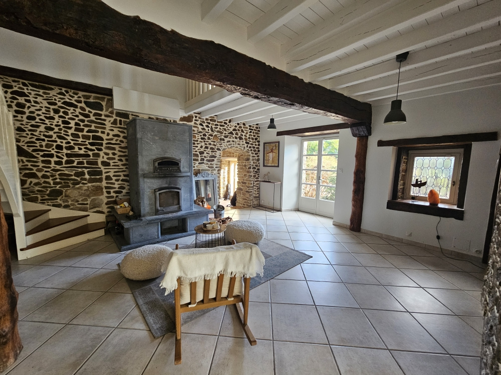 VERN SUR SEICHE : Magnifique maison indépendante ancienne rénovée d'une superficie de 230 m2 habitables. Beaux volumes, pièce à vivre lumineuse avec le cachet de l'ancien (murs de pierres apparents, tomettes, poutres). Une cuisne haut de gamme aménagée et équipée avec espace repas pour une superficie de 41 m2, un séjour-salon avec poêle scandinave et un salon plein de charme avec cheminée ancienne. Une chambre au rez-de-chaussée avec dressing et salle de bains privative, deux chambres à l''étage avec possibilité d'une 3 éme au niveau de la mezzanine, un bureau. De plus, une buanderie et une arrière cuisine complètent le bien. Attenant à la maison un double préau, une cour intérieure avec facilité de stationnement. Terrain de 3118 m2 sans vis à vis à l'abri des regards. Bel environnement.