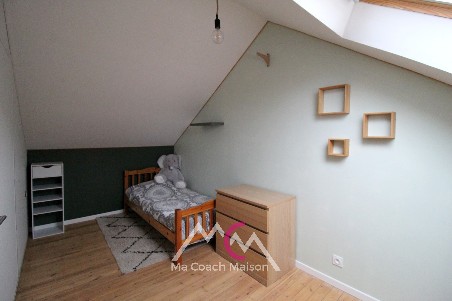 À l'étage, un palier dessert une chambre, un espace de rangement et un grenier mansardé offrant un potentiel d'aménagement supplémentaire.