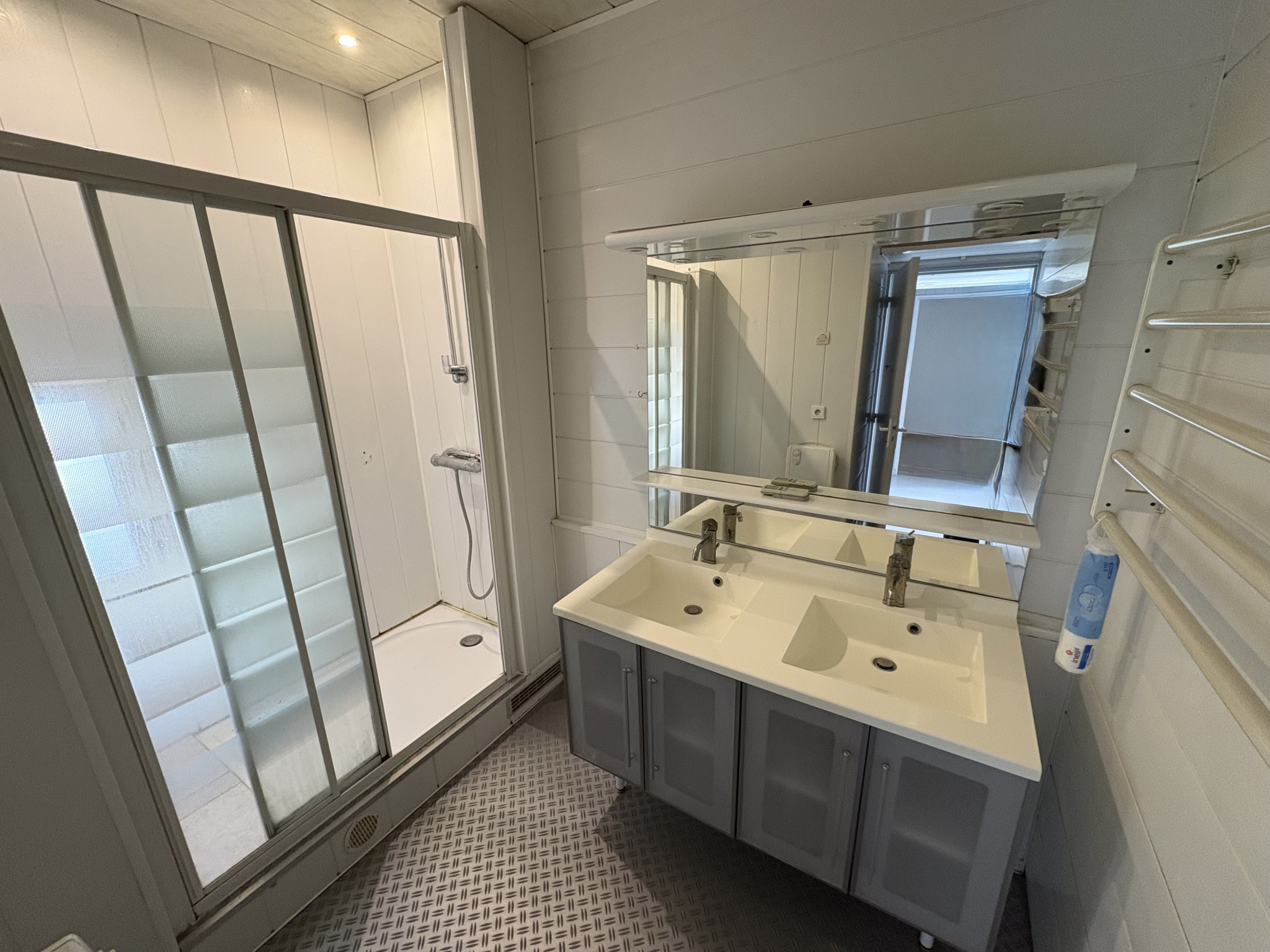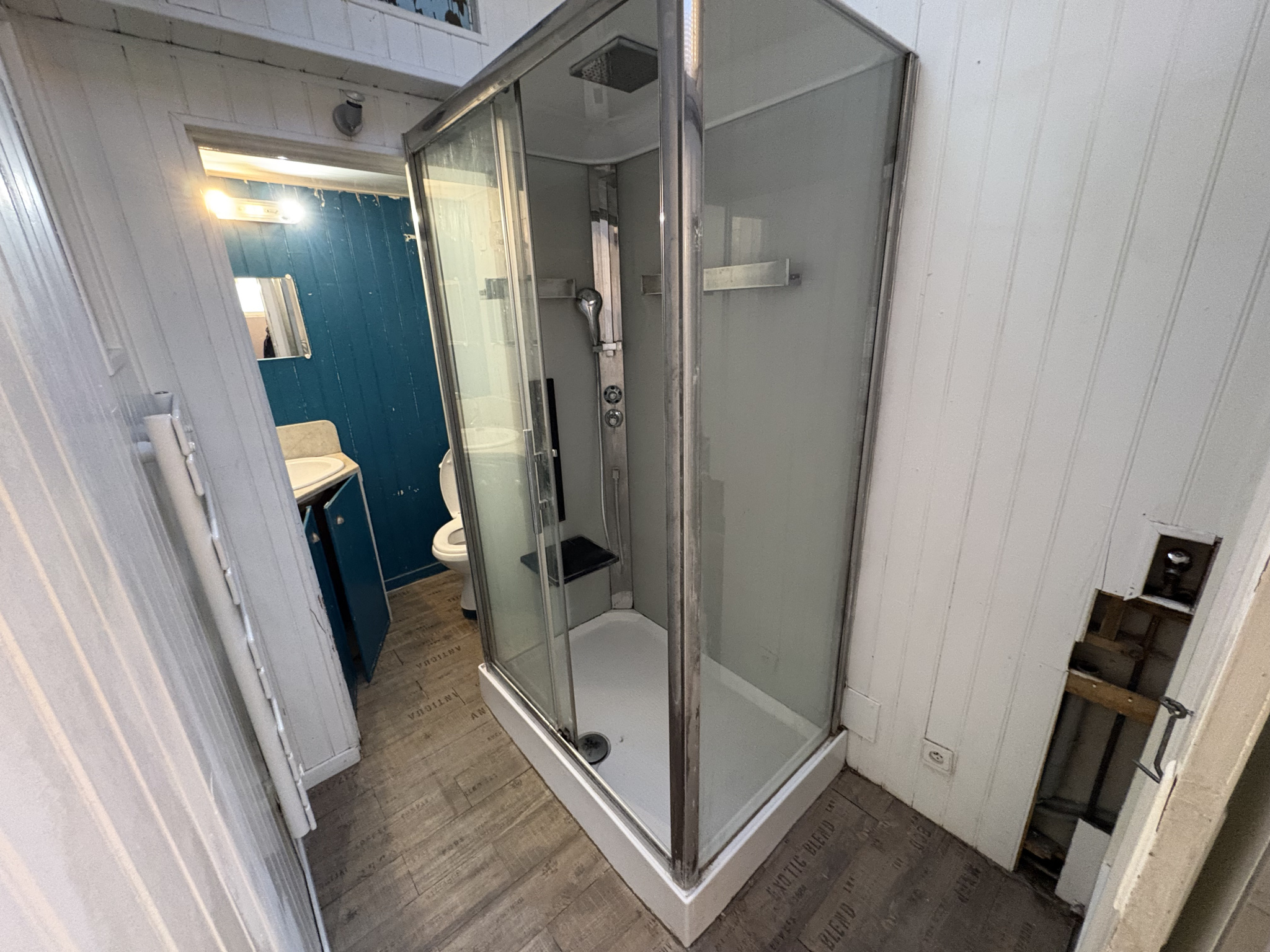 Les intérieurs se composent d'un vaste séjour d'environ 40 m2, particulièrement lumineux grâce à ses nombreuses ouvertures et sa belle hauteur sous plafond, avec un accès direct à la terrasse. La cuisine indépendante, aménagée, bénéficie également d'un accès vers l'extérieur.