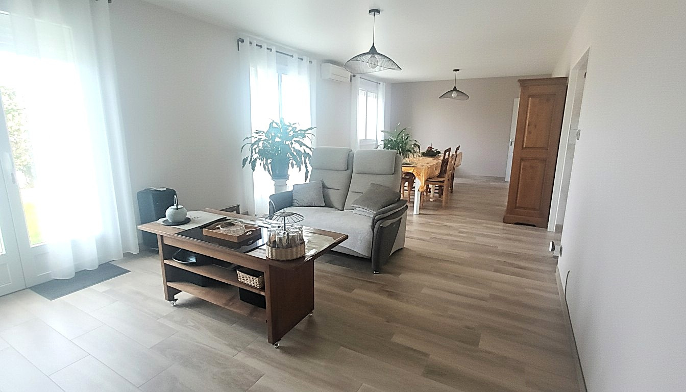 Dès l'entrée, vous serez séduit par ses grands espaces lumineux . Une très grande cuisine lumineuse aménagée et équipée.