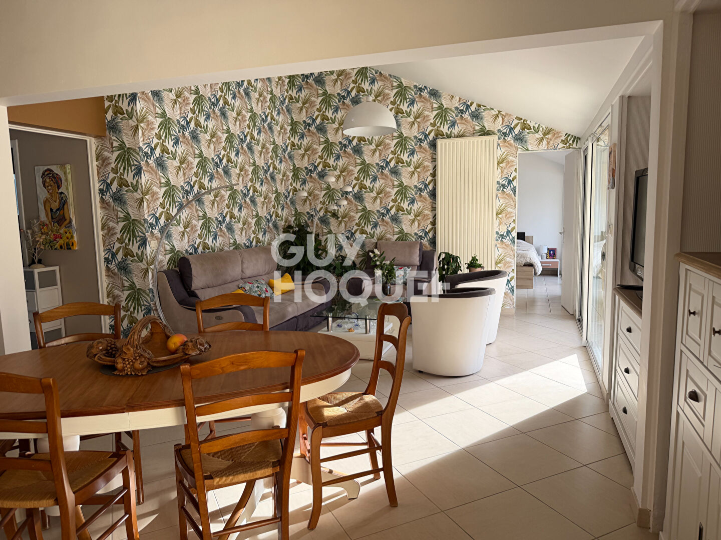 D'une surface habitable d'environ 100m², cette maison offre un cadre de vie agréable et fonctionnel. Elle se compose d'un séjour/salon lumineux, idéal pour les moments de convivialité, ainsi que d'une cuisine indépendante entièrement équipée.