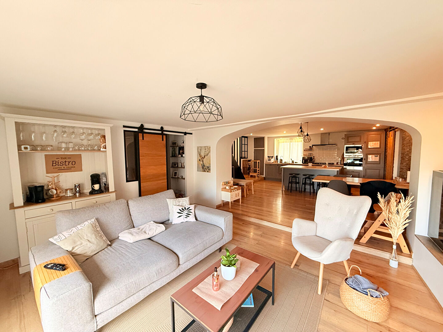 Cette spacieuse maison de bourg entièrement rénovée offre de beaux volumes et un cadre de vie agréable, idéal pour une famille ou un projet mêlant habitation et activité.