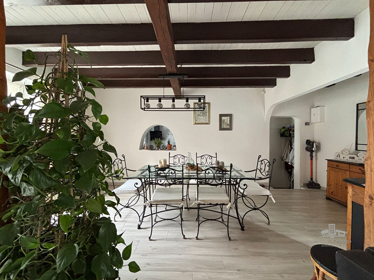 En RDC, vous serez séduit par sa belle pièce principale de 45 m², pierres apparentes, avec cheminée et une belle cuisine de 18 m².