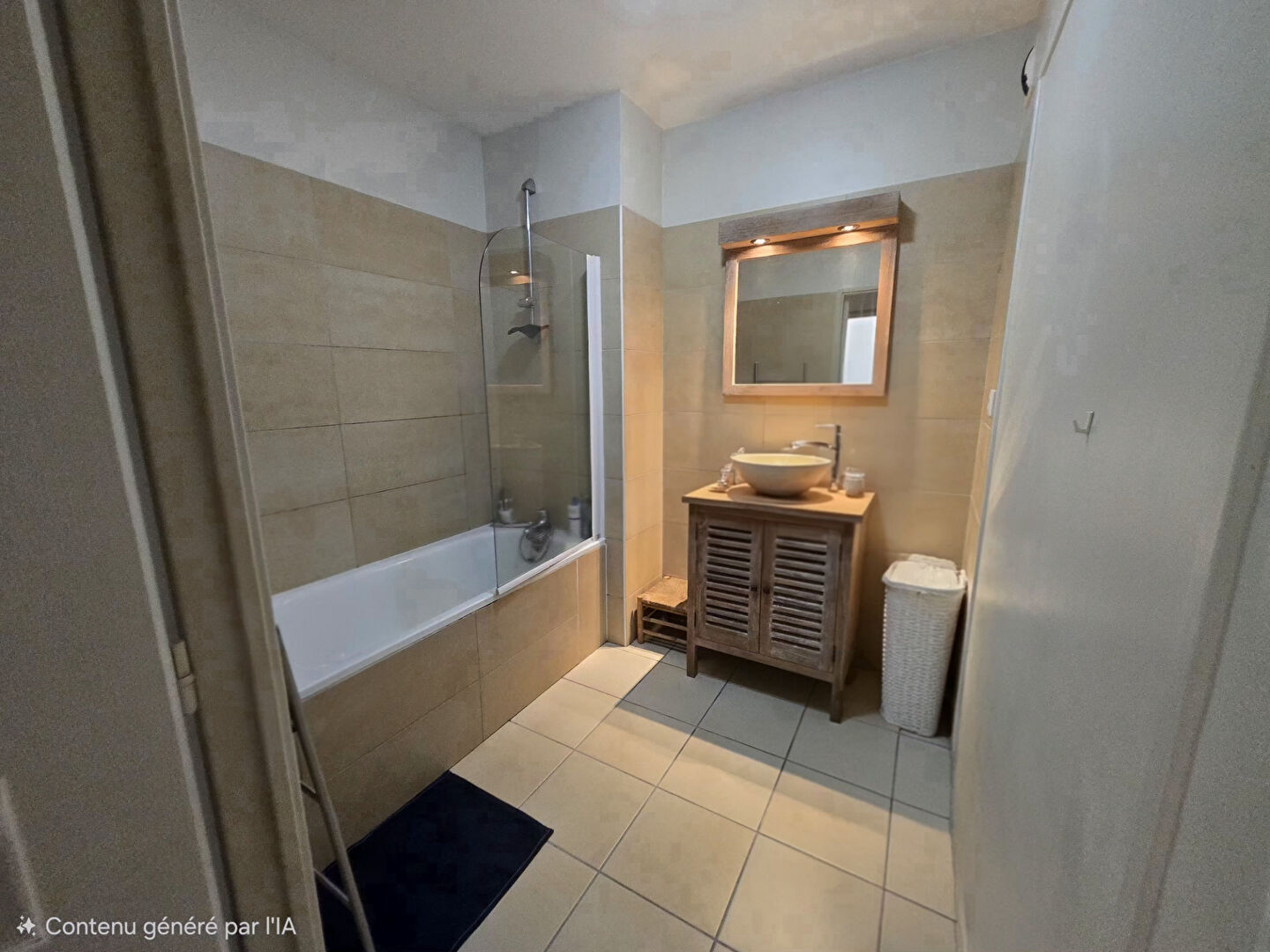 Il comprend une chambre climatisée avec placard, une cuisine ouverte, un séjour, une salle de bain, un W.C séparé, une varangue de10.42 m² et une place de parking en ext (120).