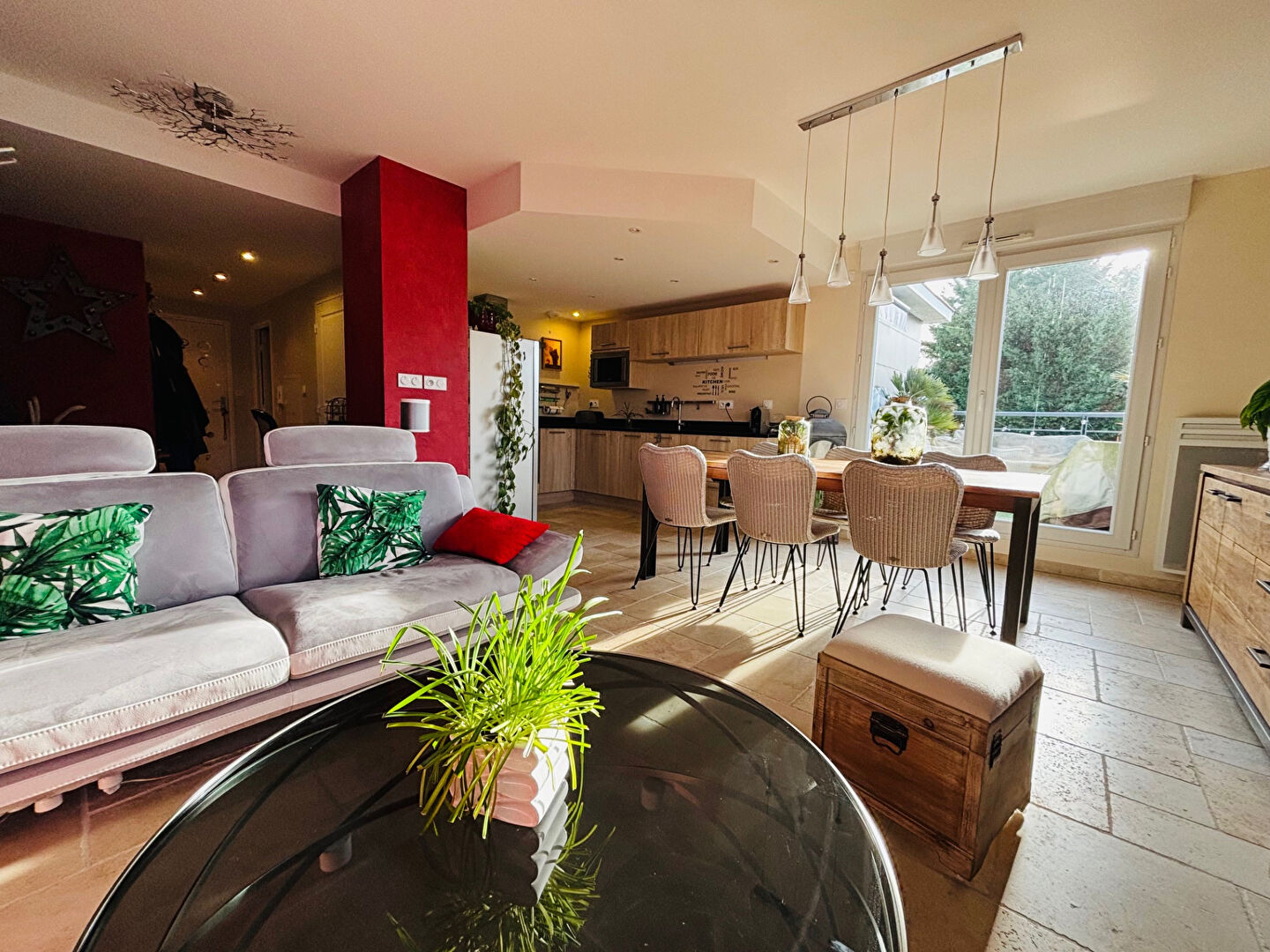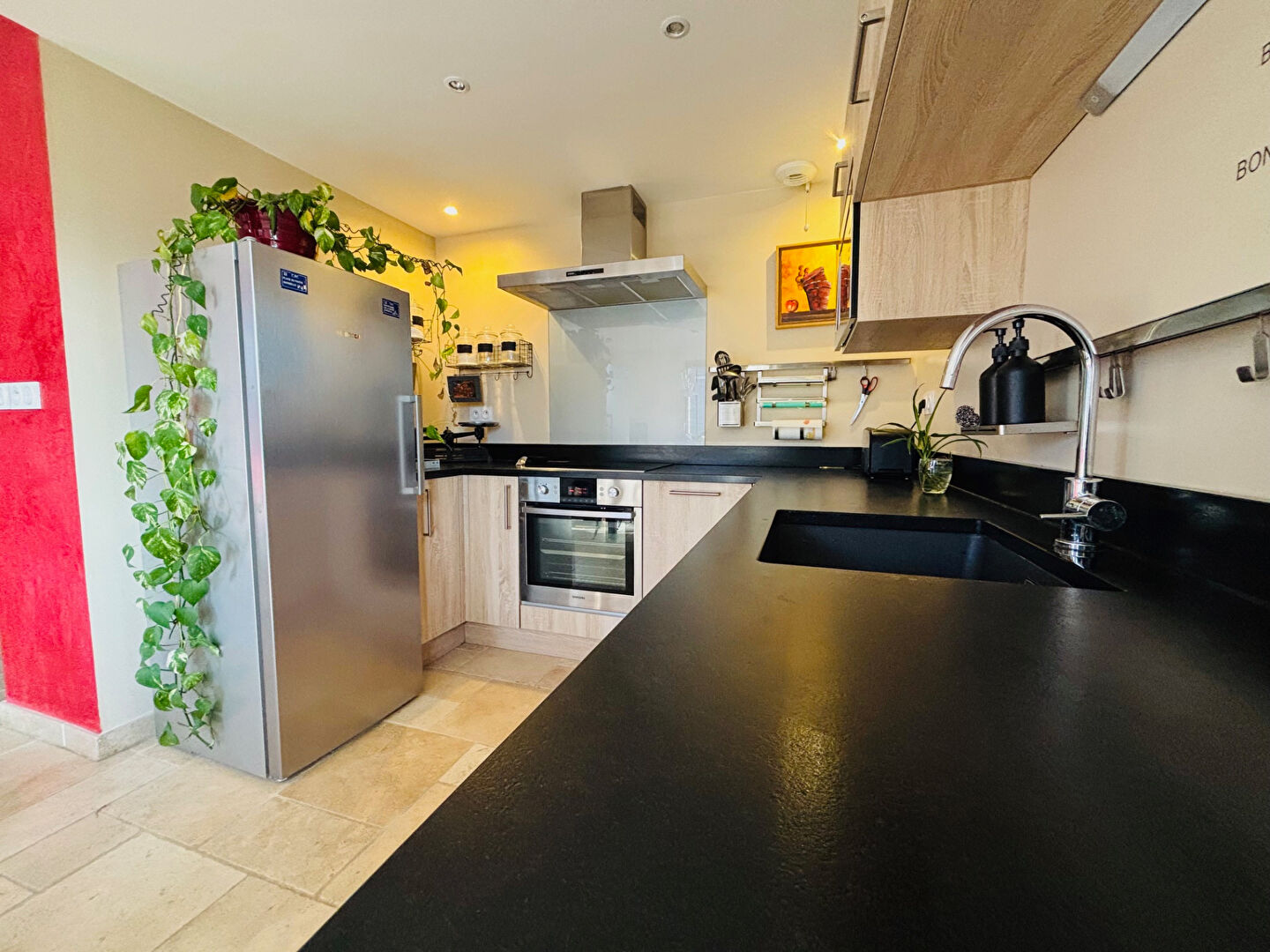 Sol et plan de travail en pierre, parquet massif, store banne , volets électriques... Appartement de belle facture, à découvrir sans plus attendre !